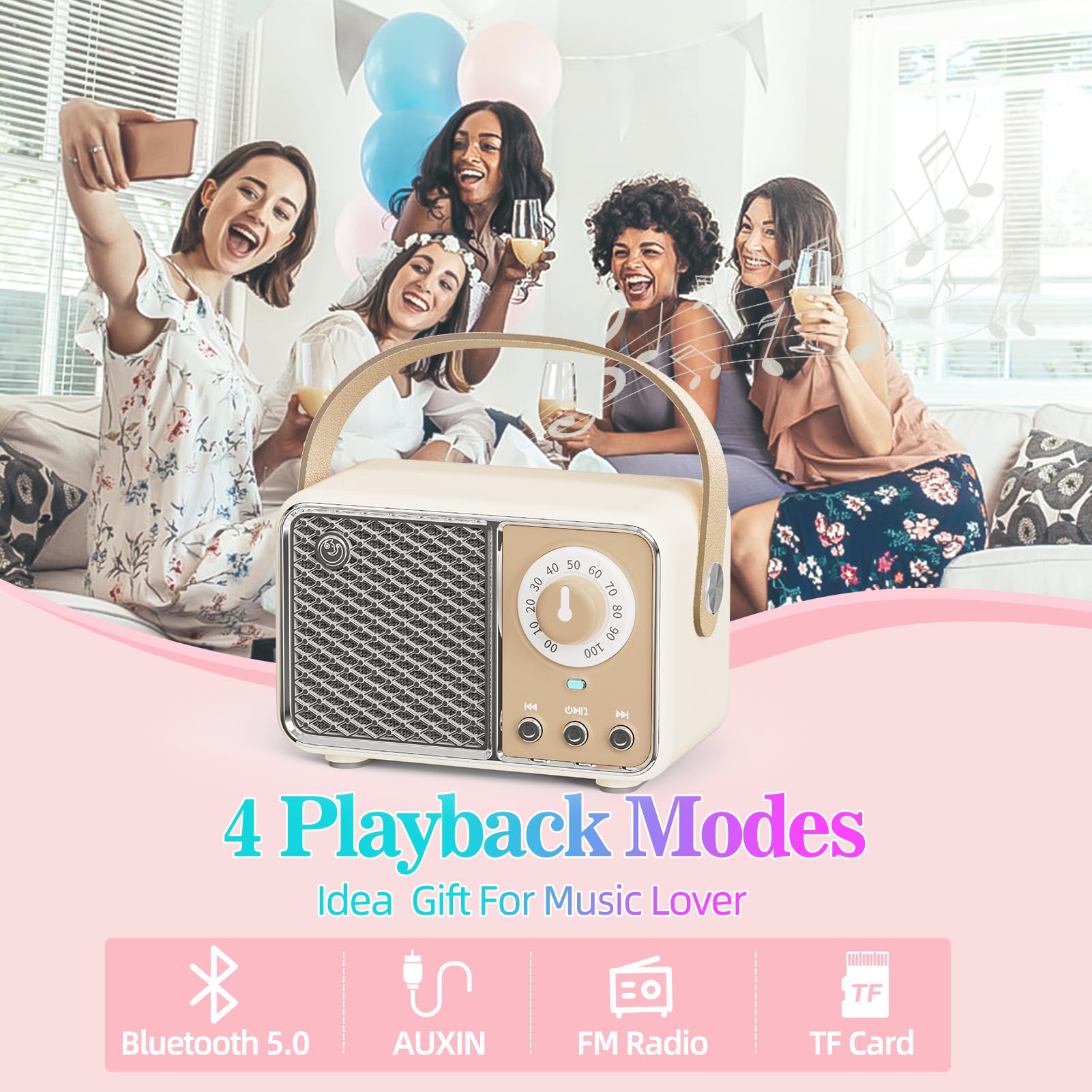 【 Bluetooth 5.0 technology& Crystal Clear Sound】: Equipped with advanced technology, compatible for all Bluetooth iPhone iPad Tablet .With the advanced Bluetooth5.0 technology, maintain a strong connection up to 32.8ft this retro Bluetooth speaker could connect with your smart equipment in less than one second.Cute Stereo Ultra mini but super loud. Whether you listen to country music, rock music or popular music, it will let you feel at the real concert scene.