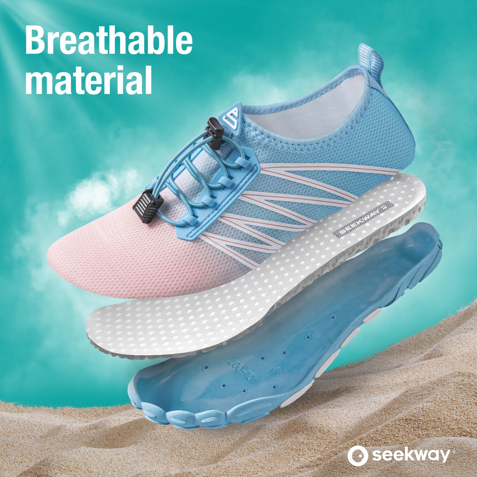 Breathing shoes:The shoe was designed to be ultra-breathable: Spandex vamp has tiny air holes for quick drying and the outsoles、insoles are designed with drainage holes to drain the water.This forms a perfect breathing system that keeps your feet cool and dry, from the inside to the outside.