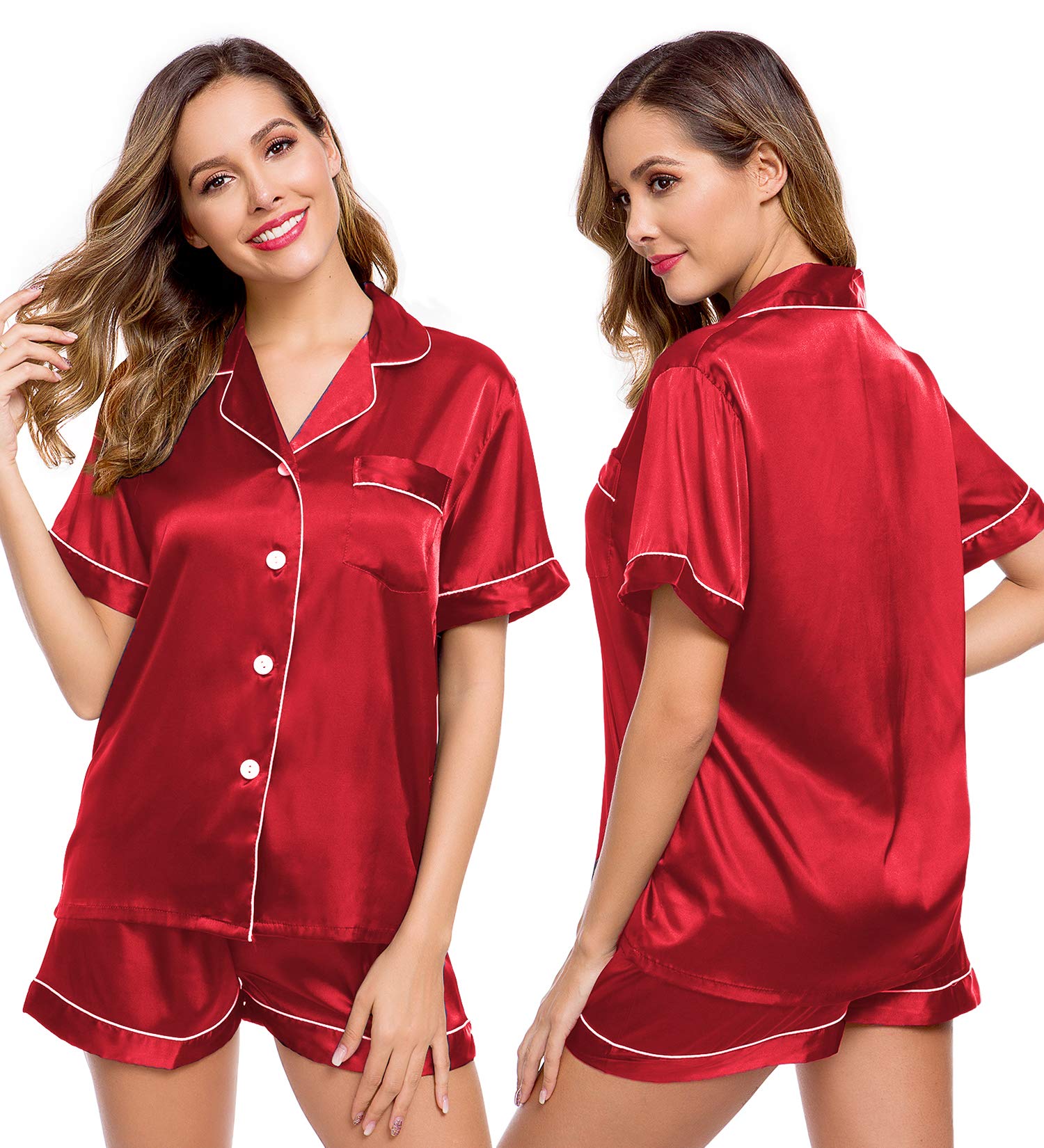 COMFORTABLE FABRIC: Made of high quality silk-like satin fabric, this pajama set is soft and lightweight, perfect for sleeping, lounging, or daily casual wear.