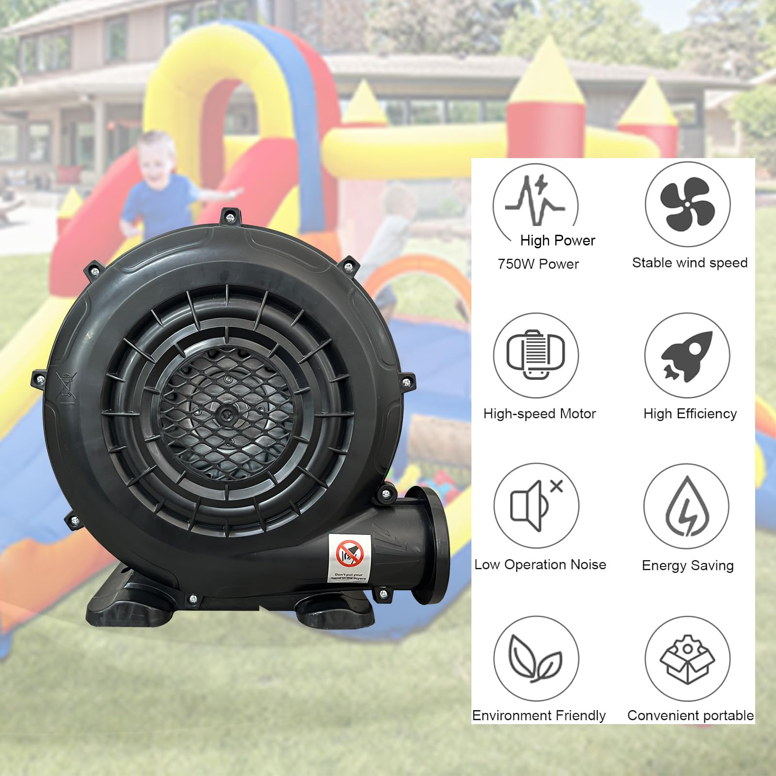 【Wide Usage】- With 110V horsepower, strong and efficient 250 watts motor,quickly filling and greatly air flowing, this air blower pump fan works well with outdoor bounce houses, water slides, inflatable movie screen, air sofas and other suitable inflatable bouncers.
