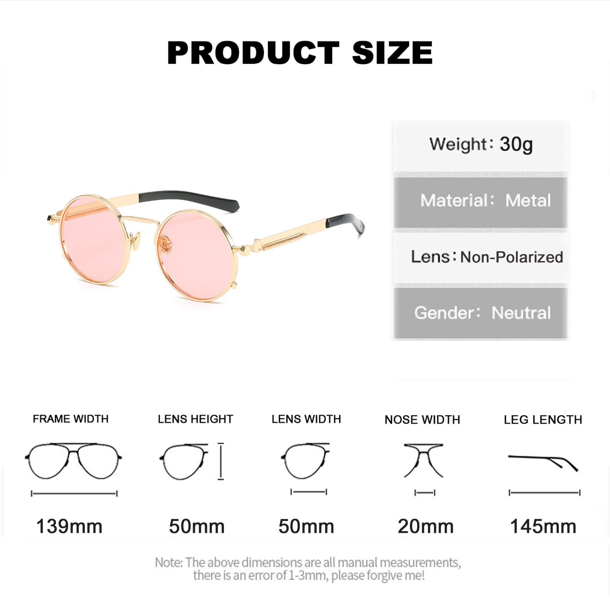 ☀CIRCLE FULL METAL FRAME DESIGN: The round sunglass uses a full stainless steel metal frame, reinforced metal hinges, soft nose pad materials, spring temples, and the overall classic steampunk design makes you more natural and beautiful when you wear it.