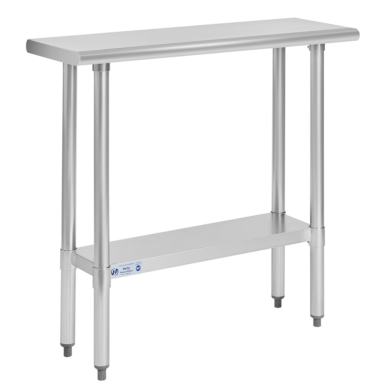 Adjustable Table & Comfortable Work** Adjustable galvanized steel undershelf and 4 galvanized steel legs, you can freely change the height of the undershelf to suit your demands. Adjustable feet with a non-slip mat provide more stability. By casters (without casters), you can move it easily. Quick to assemble by instructions