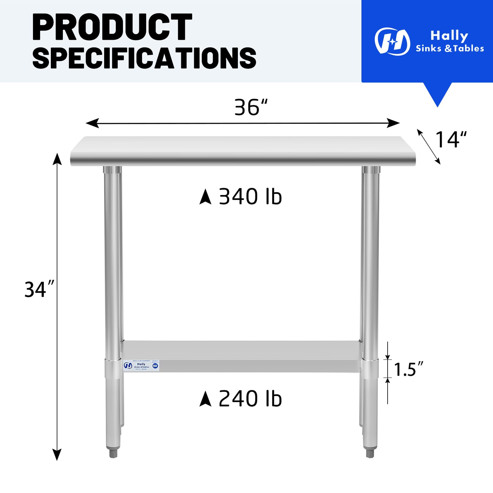 Large & Practical Storage**2 layers: 340 lb. top shelf weight capacity; 240 lb. undershelf weight capacity, dimension 14 x 36 inches, offer you enough storage room for microwave oven, kitchen utensils or any other tools