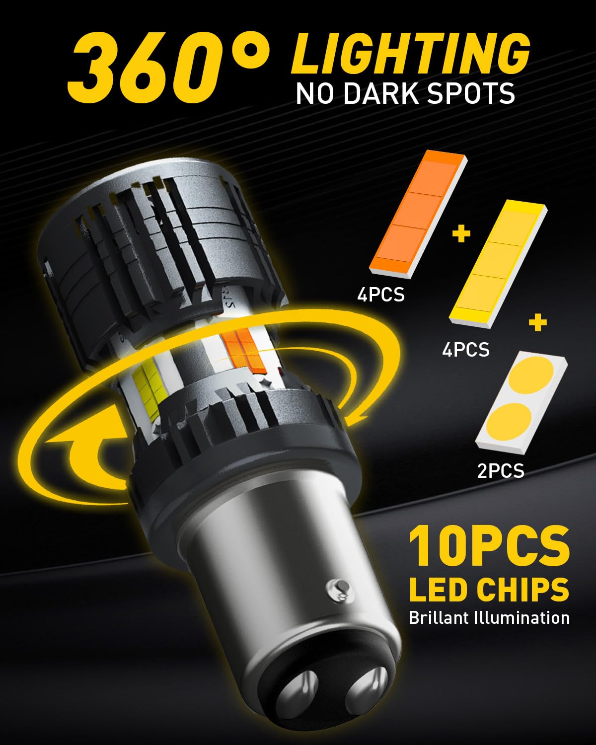 50,000 Hours Lifespan: Whole aviation aluminum body and 12,000RPM turbo cool fan that diverts heat away from the light's critical components, our 1157 led switchback turn signal light bulbs offer 50000hr lifetime, reducing the need for frequent replacements.