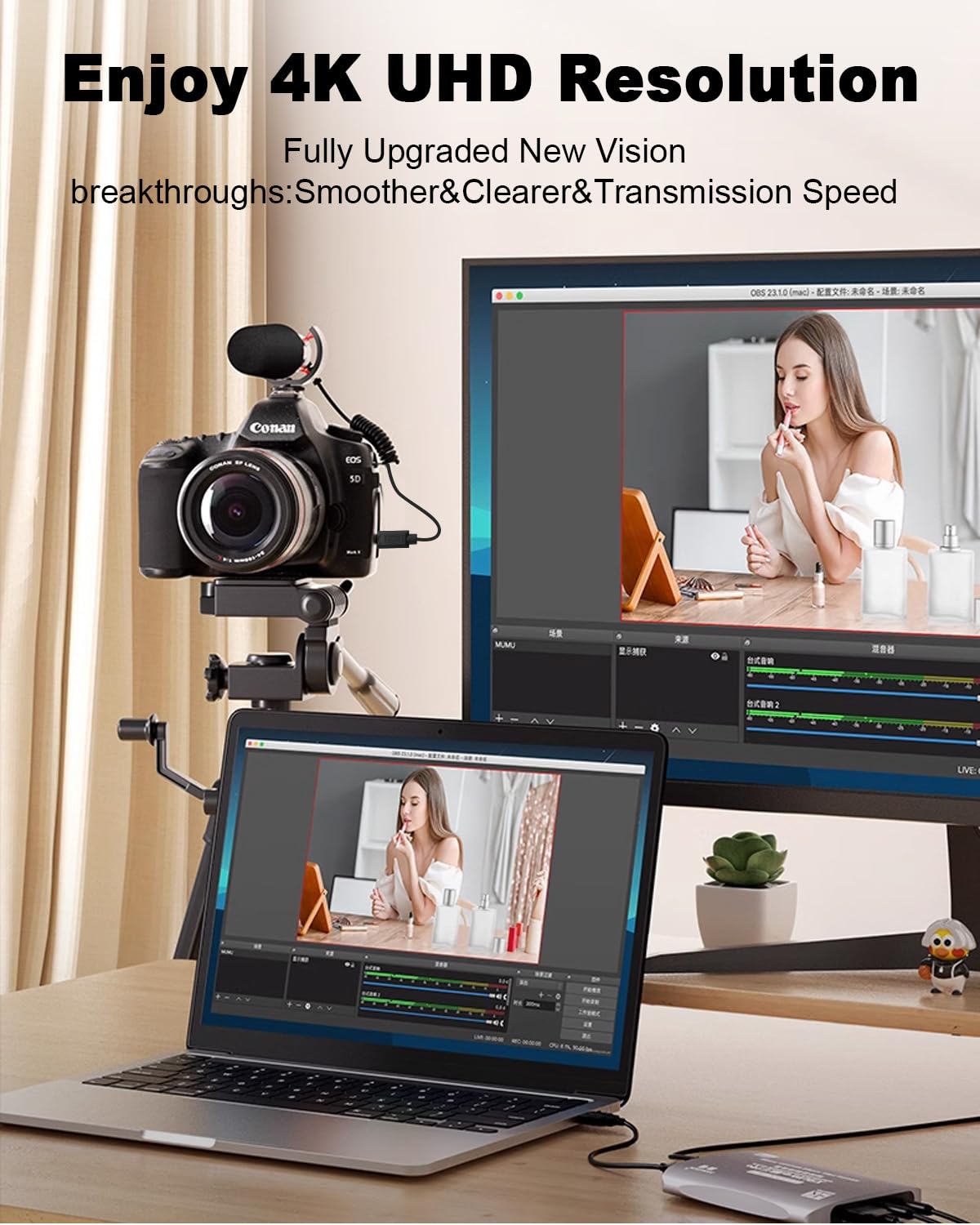 4K Micro HDMI to HDMI Adapter Cable is plug and play, no driver required. The precisely designed Micro HDMI port has a strong grip and can fit tightly with the ports of your monitor, graphics card, high-definition TV, camera, laptop, tablet, camera, metal desktop, Raspberry Pi, and digital single-lens reflex camera. It is not easy to shift and has a durable structure. It has been tested to be plugged and unplugged over 1000 times.