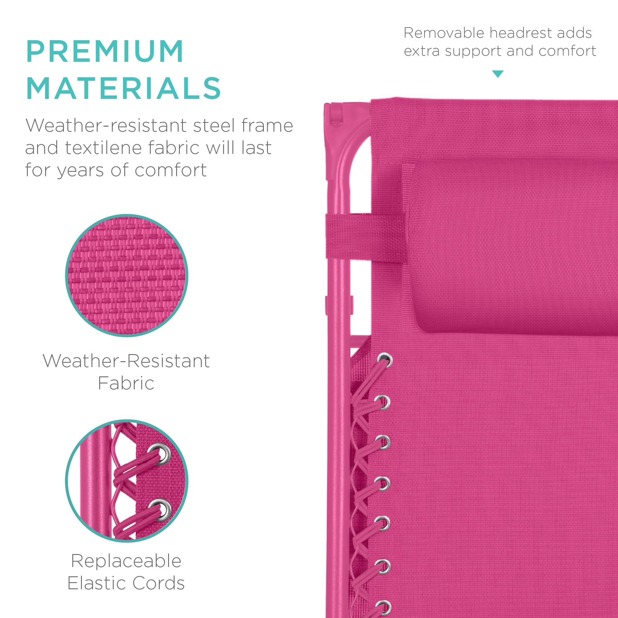 ADJUSTABLE CANOPY SHADE & HEADREST: Protect your face and eyes from the sun using the freely-adjusting canopy and lay back on the removable headrest pillow