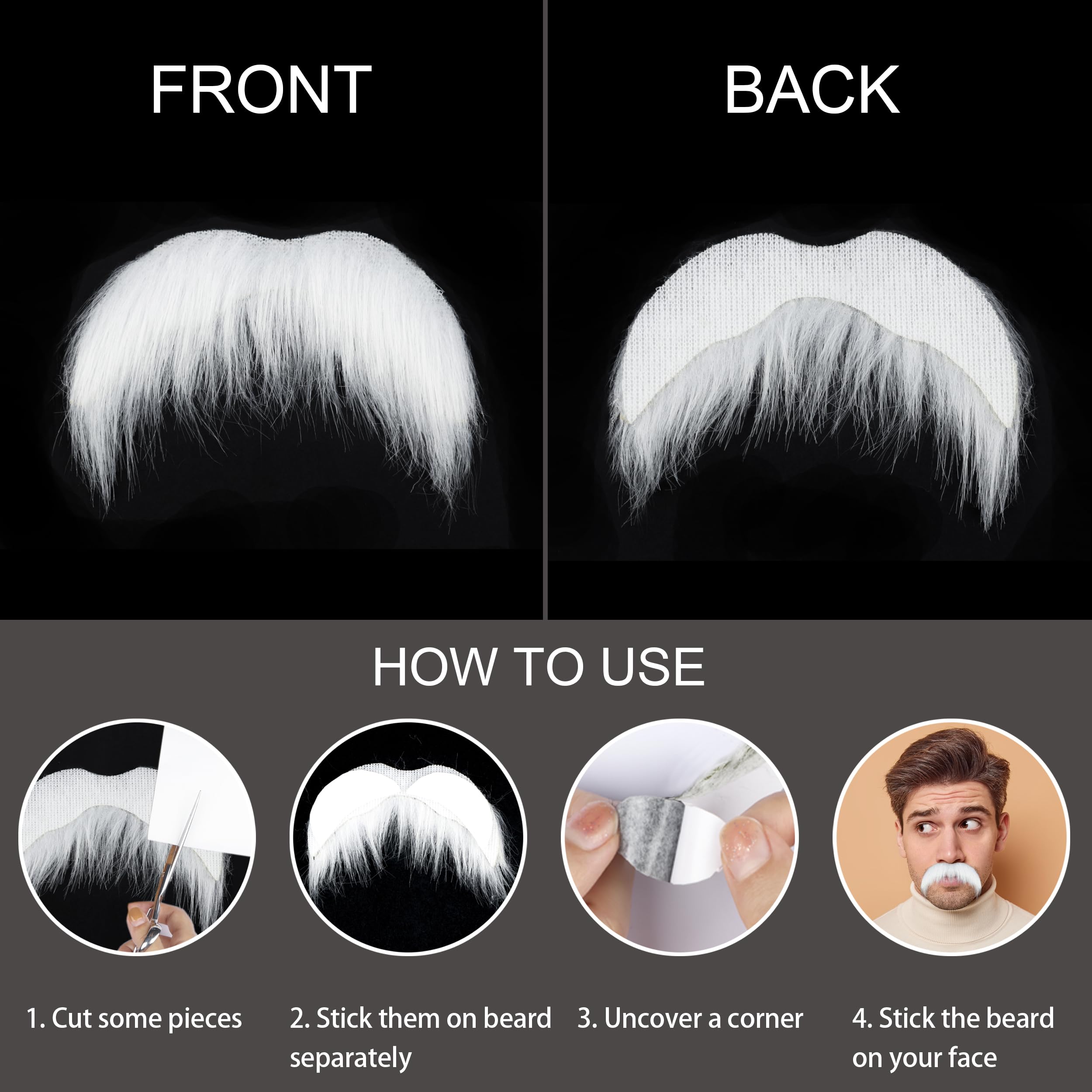 Men Costume Facial Hair, White Fake Beard for Adults, Costume Accessories for Halloween Cosplay