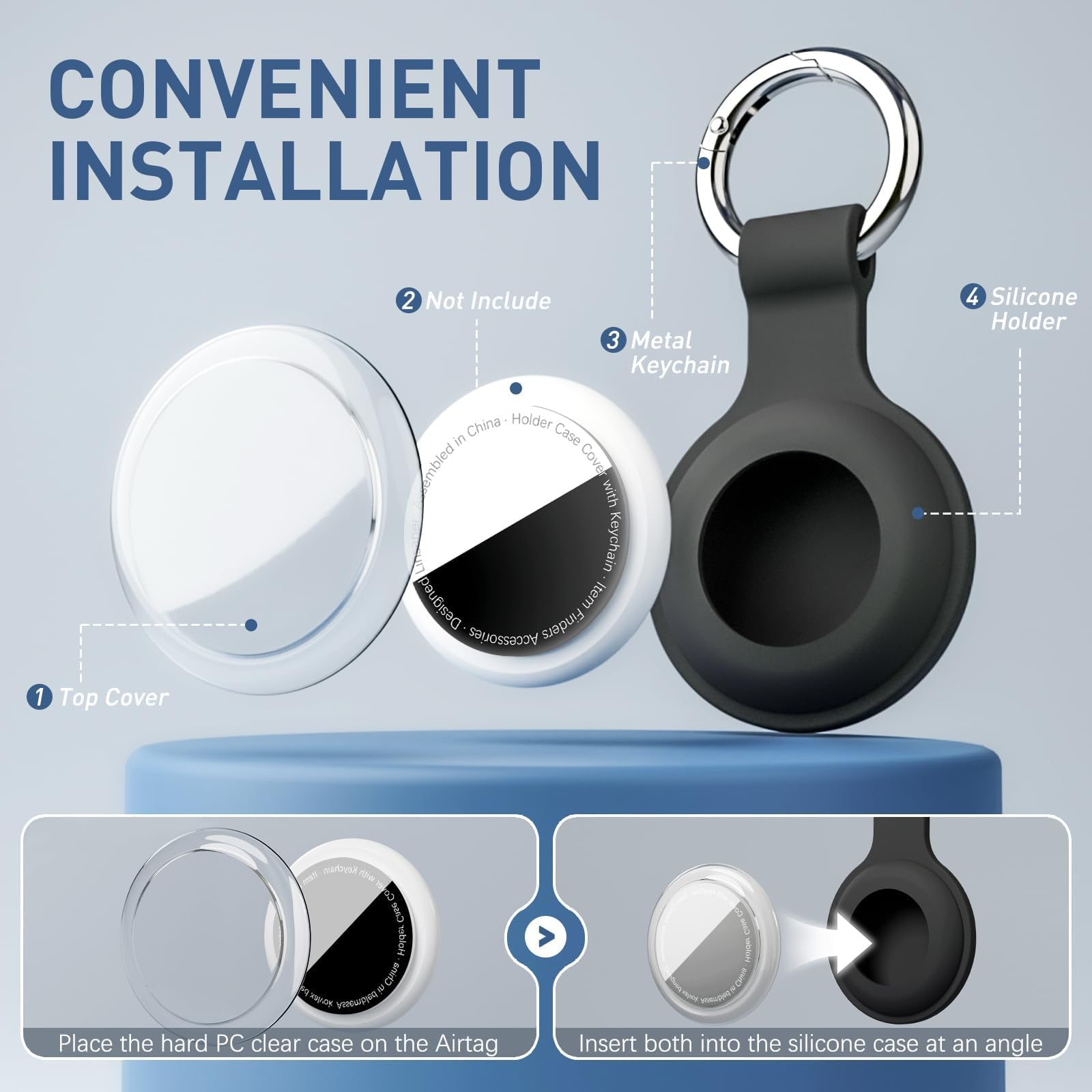 HASSLE-FREE INSTALLATION: First, place the hard PC transparent shell on the item tracker, then insert the two together at a certain angle into the silicone shell. It is lighter, thinner and more skin-friendly than other cases, providing you with a comfortable wearing experience