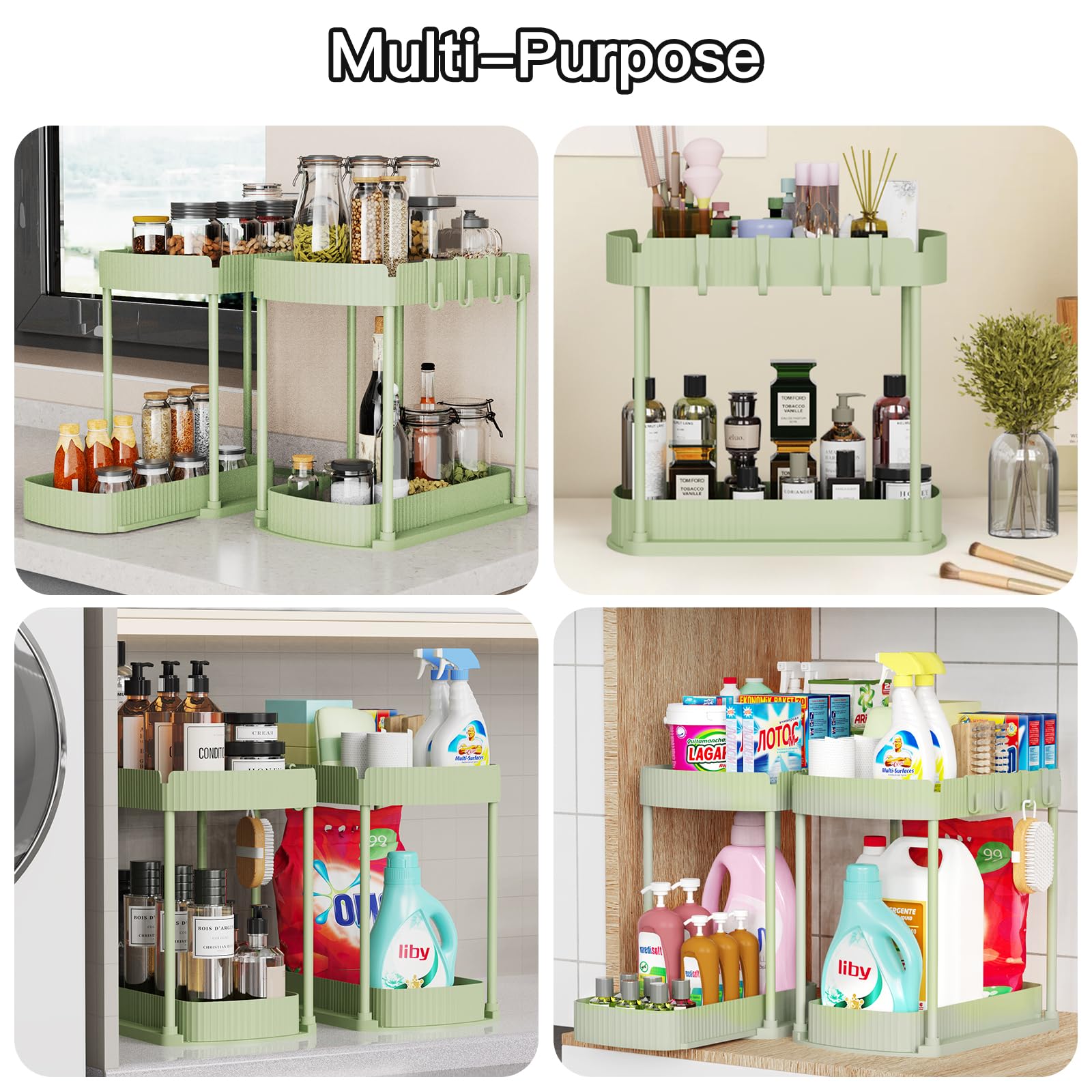 【2 Pack Value Set】Sized at 15” x 8” x 12.8” each, these organizers fit perfectly for bathroom organizers and storage, kitchen organizers and storage, under sink organizer and under cabinet storage.