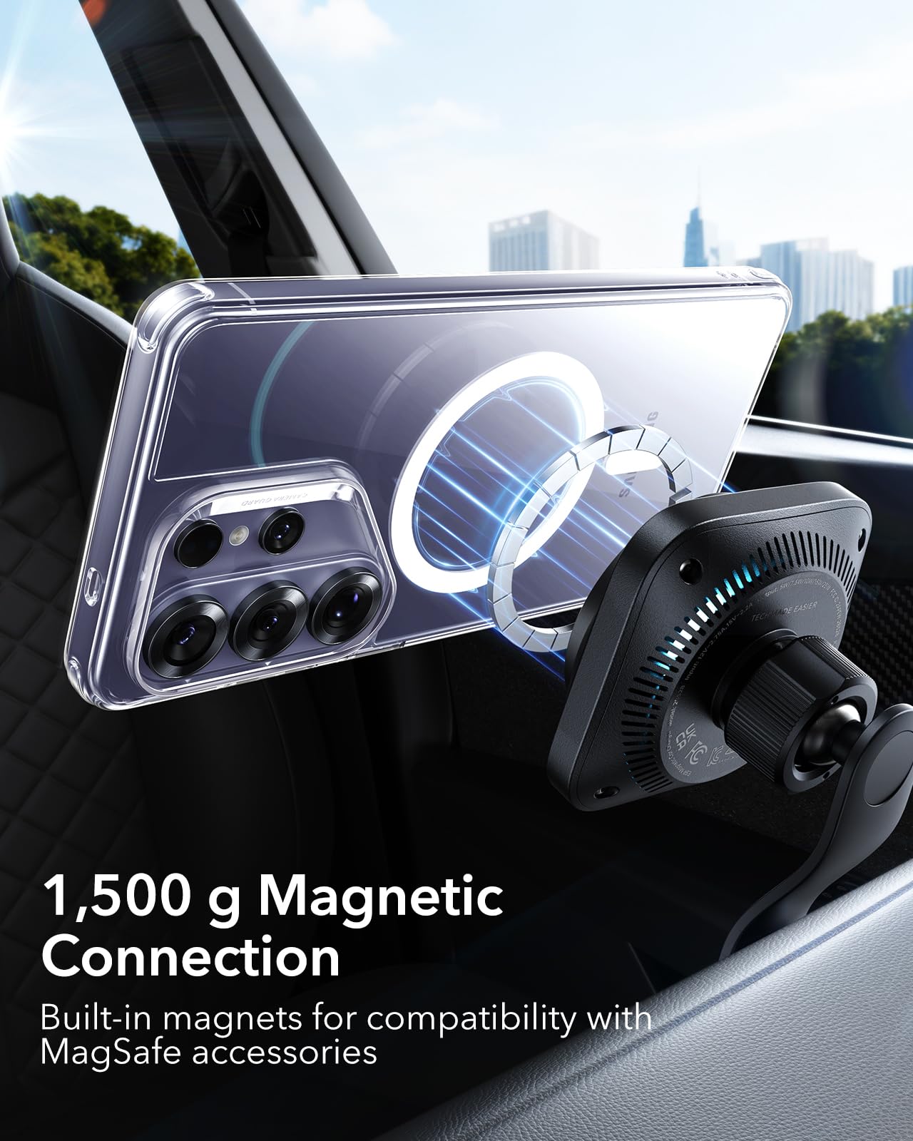 Stronger Magnetic Lock: powerful built-in magnets with 1,500 g of magnetic strength enable faster, easier snap-and-go wireless charging and ensure a secure lock with any MagSafe accessory