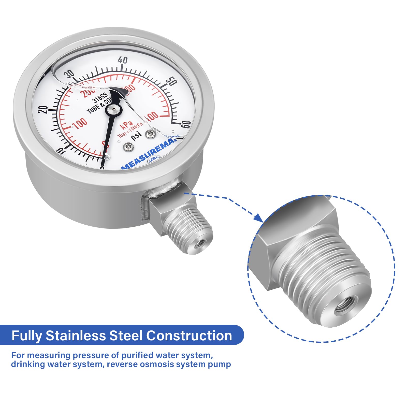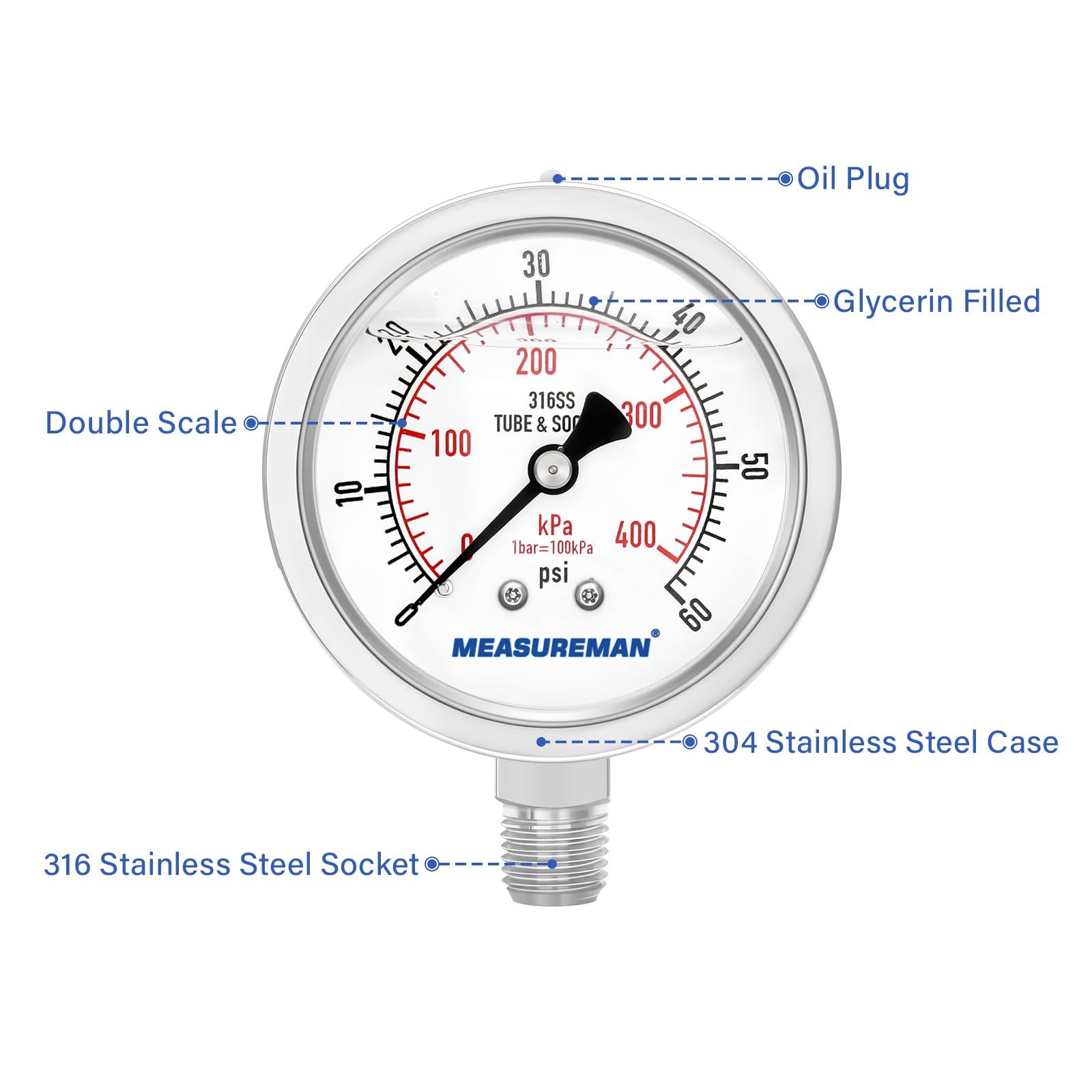 2-1/2" dial size, 1/4"NPT lower mount, TIG welding between case and socket