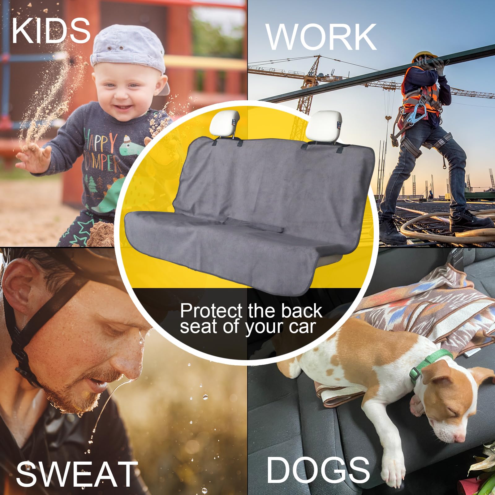 A Must Have Back Seat Cover: Bench seat cover will keep your car seats fresh and clean and will instantly protect your car seats from sweat, scuff marks, moisture, and pet footprints. Back seat protector is water resistant. It is designed to fit perfectly on your back seats.