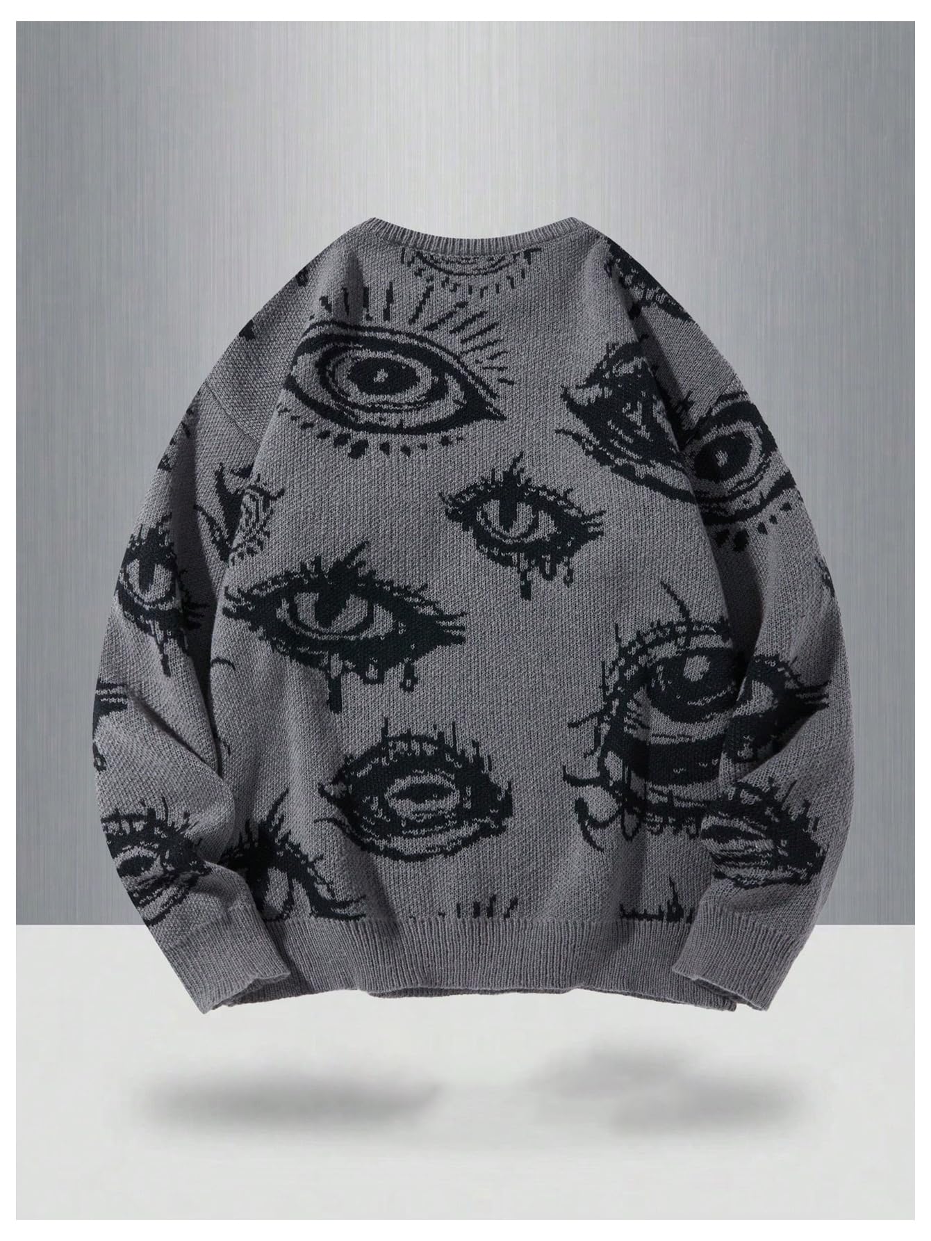 Features: Graphic, round neck, long sleeve, oversized, halloween sweater, loose fit pullover sweaters for men