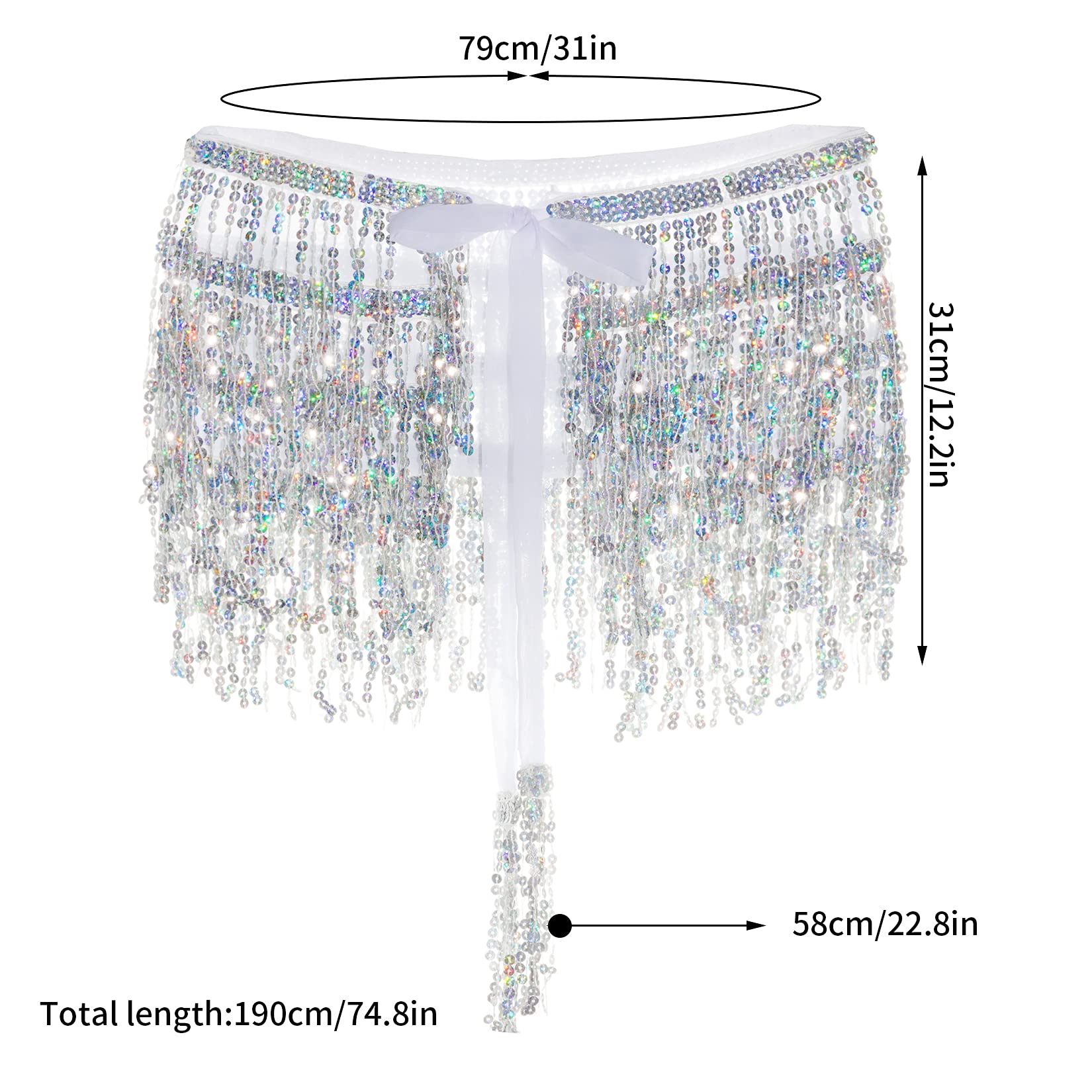 Exquisite Design: This fringe hip scarf has various strands of sequins, reflect any light that shines on its surface, unique and gorgeous, make you be the center of the crowd
