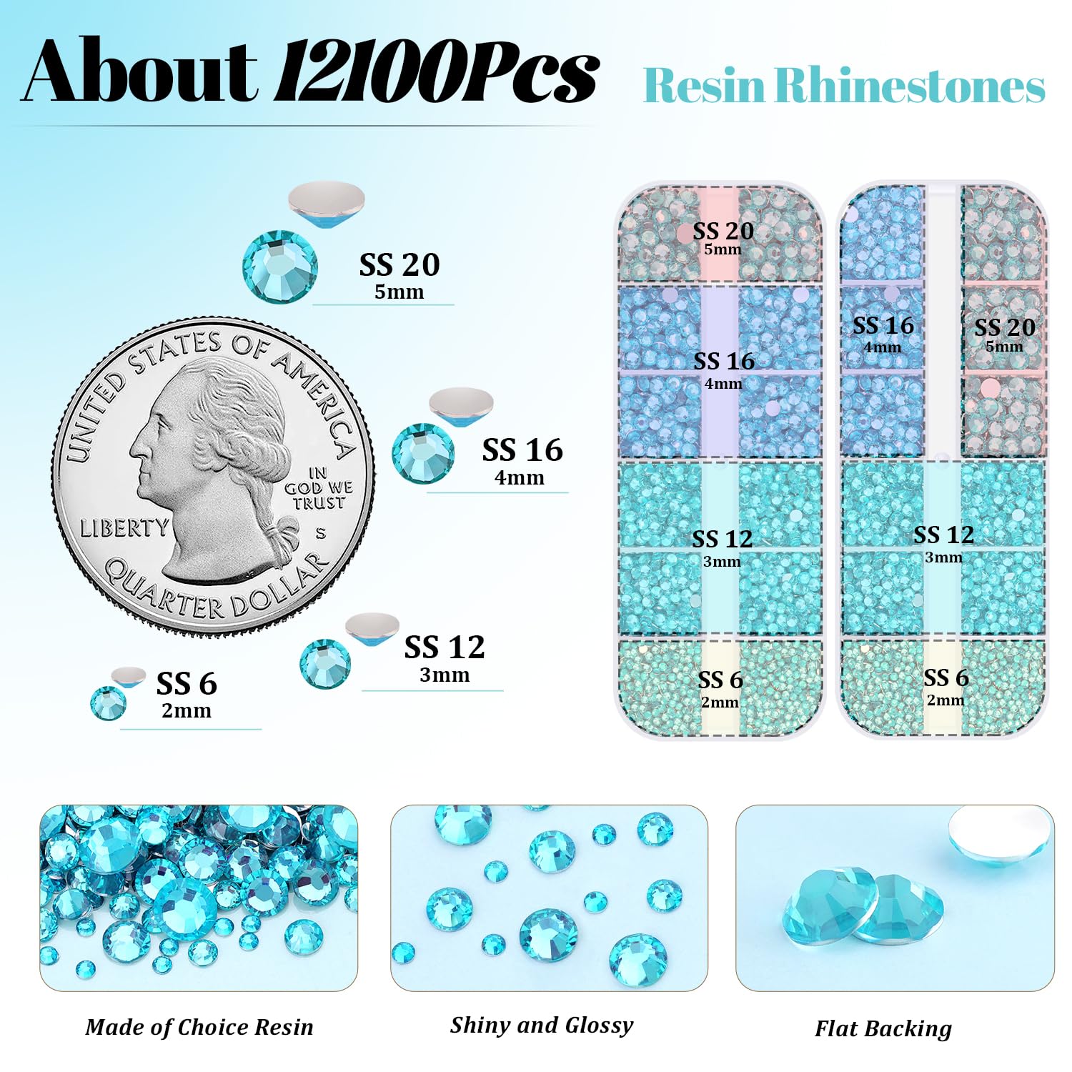 WHAT YOU WILL GET -- The package includes 2 boxes of flatback rhinestones with 12 grids in diffrent sizesοΌBox #1 2mm x 2 grids, 3mm x 4 grids, 4mm x 3 grids, 5mm x 3 grids, Box #2 2mm x 2 grids, 3mm x 4 grids, 4mm x 4 grids, 5mm x 2 grids. 1 tweezers for large size gems, 1 pickup pen for small size gems. 3 B7000 adhesive jewels glue for jewelry making.This rhinestone kit makes it easy for you to make any craft you like, and will bedazzle your artworks!