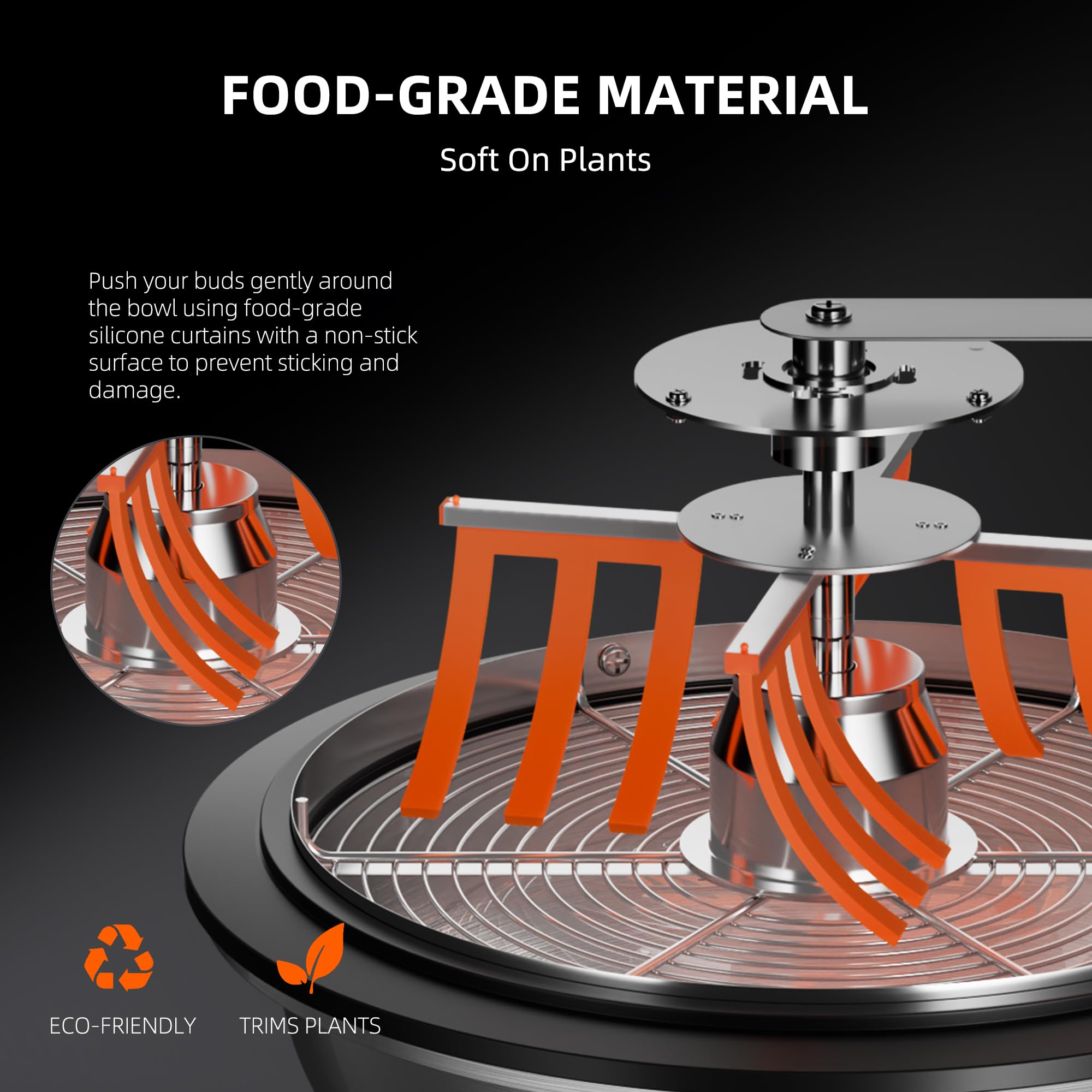 Food Grade Silicone: The evenly distributed food grade silicone brush can effectively process plants without damaging the flowers. The silicone feet at the bottom can be stable and non-slip during operation