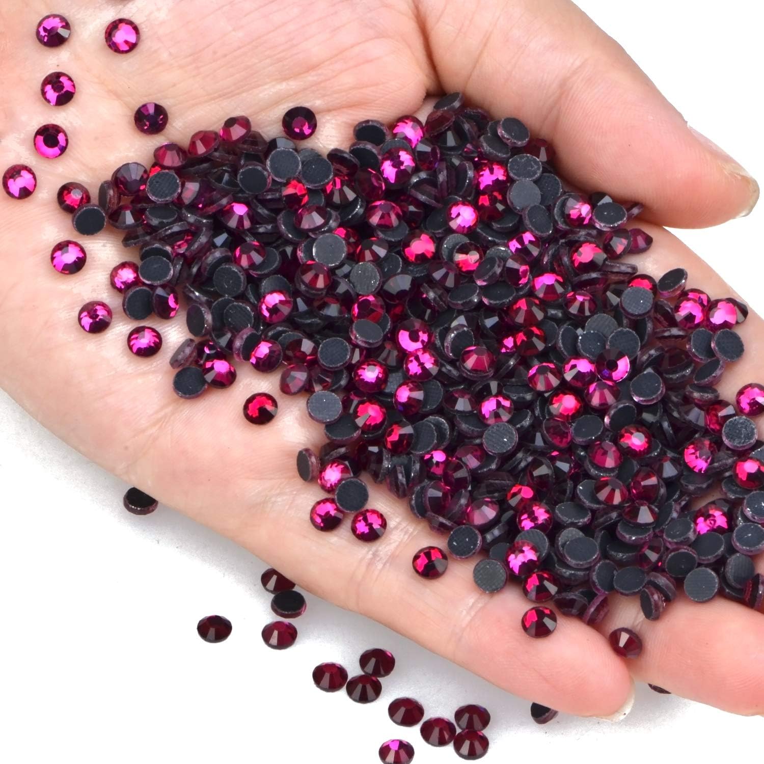 Product description Sparkling and Shining Flatback Rhinestones: Those flatback rhinestones are made by high quality glasses, good cutting multifaceted by machine, great shines under sunshine and spotlights. 1000 Pieces Multicolor rhinestones in variety sizes or colors: Wide range of applications: Suitable for: nail art eye makeup body art phone bags greeting cards clothes high mesh stockings shoes wedding dress books guitar tablets car plates table scatter All what you imagine Specifications: Quantity: 1000 pieces Color: Fuchsia Material: glasses Diameter(Flatback Round): SS10 (3mm) Package includes: 1000 Flatback round crystals Warm Notice: Wonderful gifts for your lover, wife, mother, family members or friends. We provide quick-response custom service with our professional and friendly reply online. If you have any question or concern, please feel free to contact us. We will do our best to fulfill your needs. !BEWARE! Since the rhinestones are small in size. Please leave the rhinestones away for child below 12 years old. Or guiding beside children to work with the rhinestones.