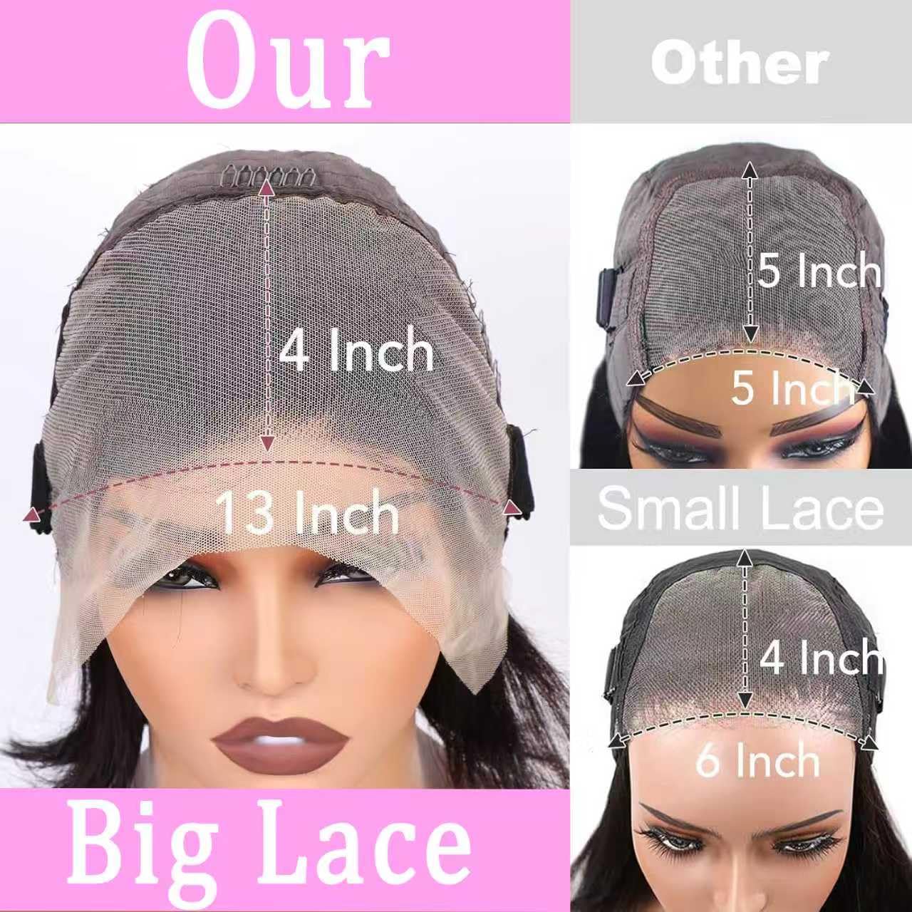 4 HD Lace Front Wigs Human Hair Pre Plucked:Our Bob Wig Human Hair 13x4 Frontal Lace Wig Have Large Space and Deep Parting of Lace,According to Your Like, can do any Side Part or Middle Part .Our Wigs is Medium Cap Size(21.5Inch - 22.5Inch) with 3 Combs and Adjustable Straps, Easy to Adjust, It Can Help You Fixed on Your Head,More Easy to Wear. We Offer 10 12 14 16 Inch Short Wigs for Black Women Option.