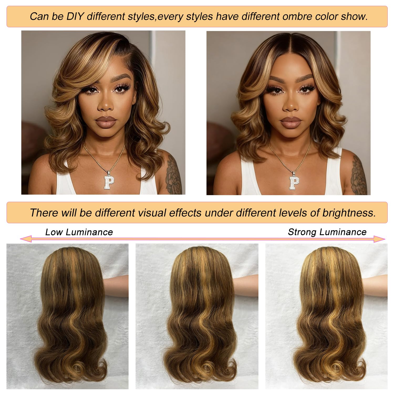 2 4/27 Ombre Lace Front Wigs Human Hair Pre Plucked Quality: 180% Density Bob Wigs for Black Women Human Hair ,Full Volume Makes it Thick and Even,No Split Ends.100% Human Hair Wig, True To Length, without Tangle or Shedding.Body Wave Lace Front Wigs Human Hair Suitable For Any Occasion.