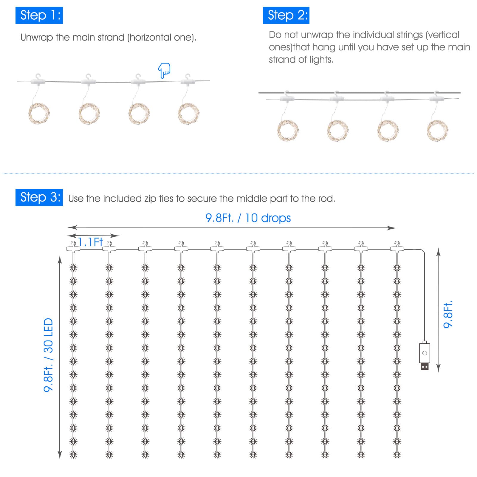 ✔️Safety & Guarantee - Operated with 5V low voltage, our fairy curtain lights glow with low heating, and it is safe to touch; It can be safely hung on the curtains or on the wall. It is a wonderful decor for dorm, college, bedroom, party, birthday, wedding, Christmas, New Year.
