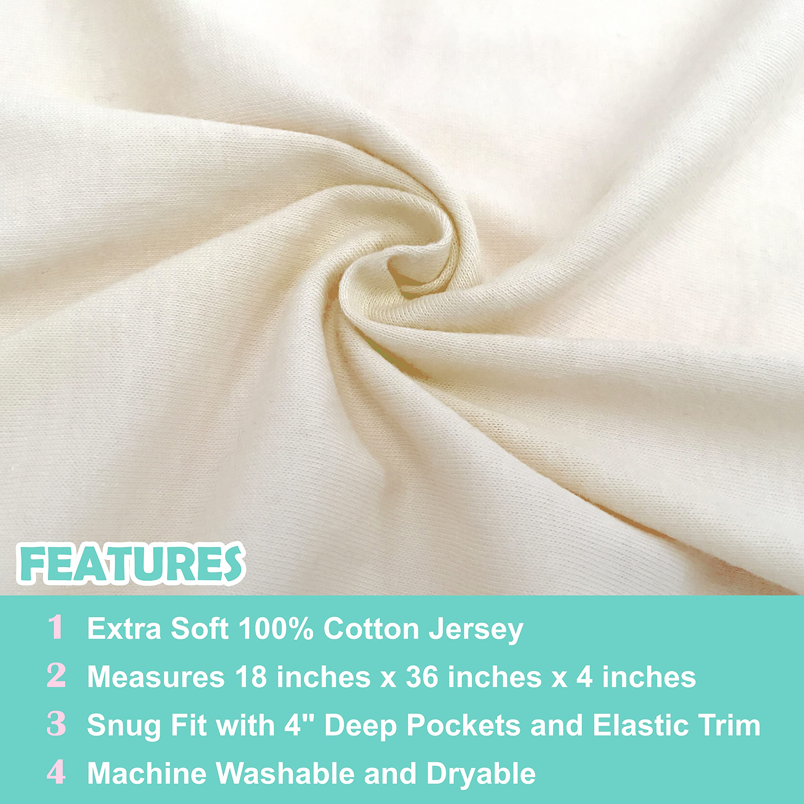 Perfect Fit & Secure Coverage: Made from 100% cotton jersey and measuring 36” x 18” with a depth of 4 inches, our cradle/bassinet sheets snugly fit most cradle and bassinet pads.