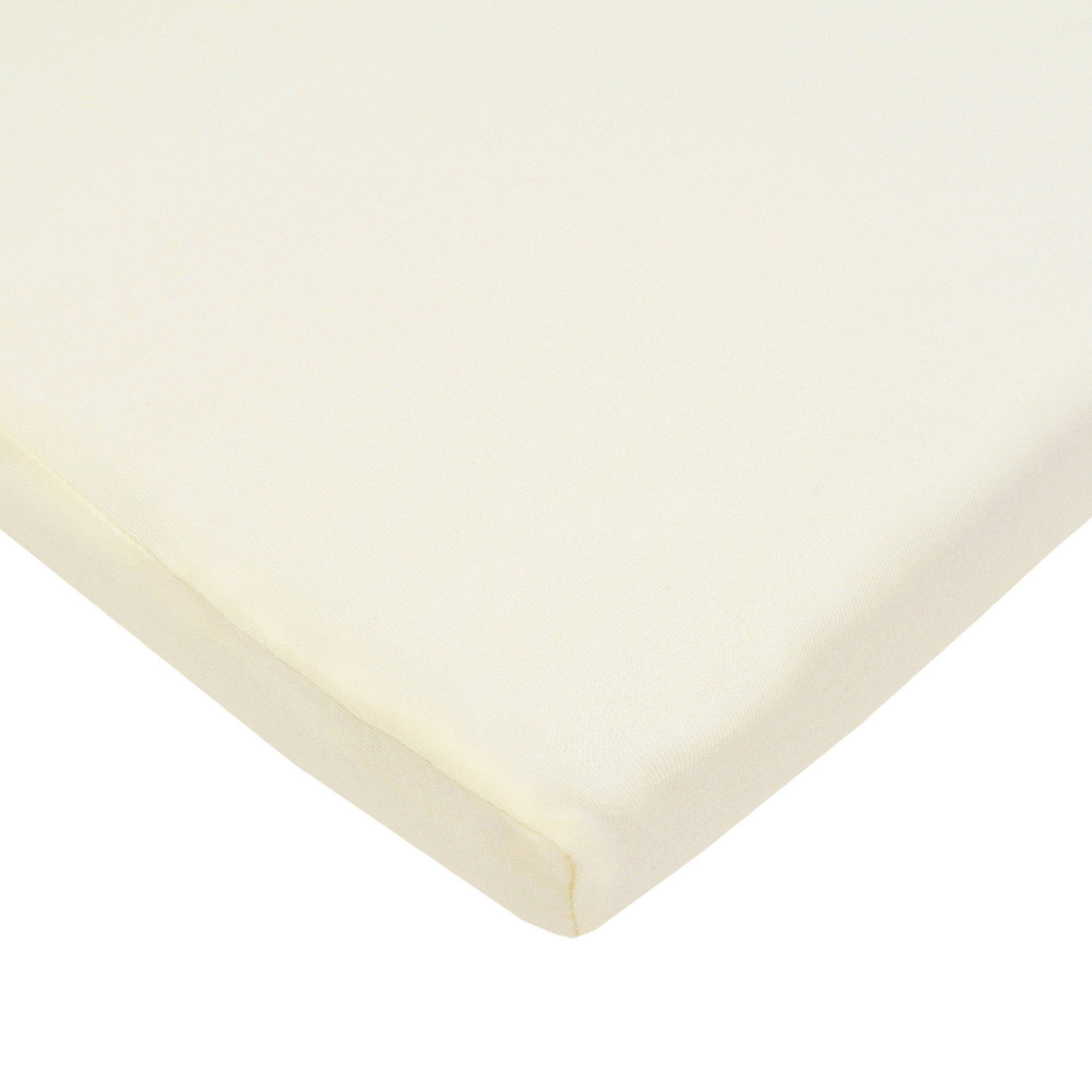 Our 100% Cotton value jersey knit fitted cradle/bassinet sheet fits standard cradle size 18" X 36" and bassinet 15" x 33" mattress pads. The 4" deep pockets provide a snug and secure fit. Machine washable cold with gentle cycle, tumble dry low for best results.