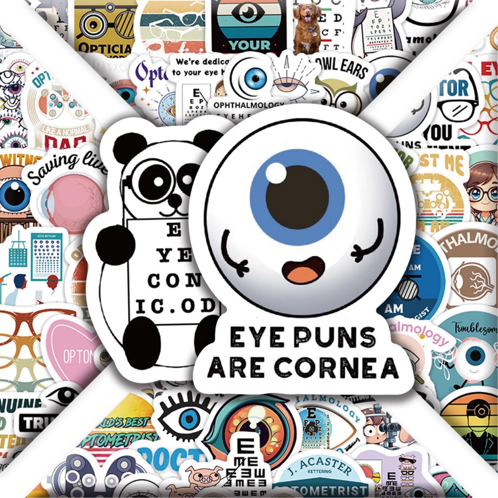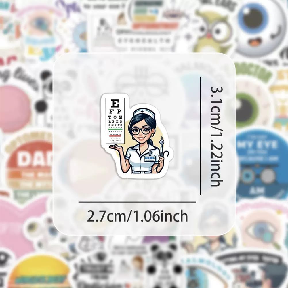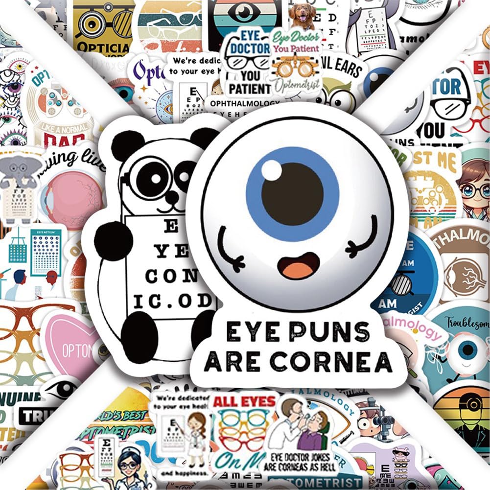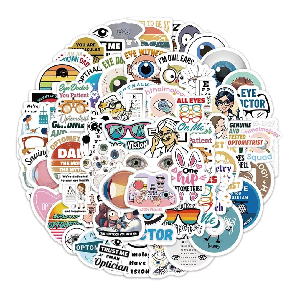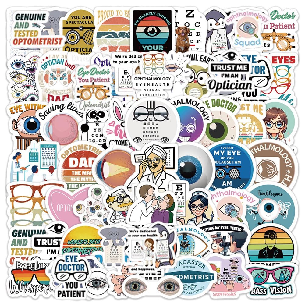 【60Pcs Included】—These Eye-doctor theme stickers pack contains 60pcs no duplicated stickers, can be attached to computer, Laptop, skateboard, Luggage, refrigerator, guitar, motorcycle, bike, Mobile Phone, etc. Various patterns sticker pack can be great gift for children, kids, youth, friends, family and other DIY decoration.