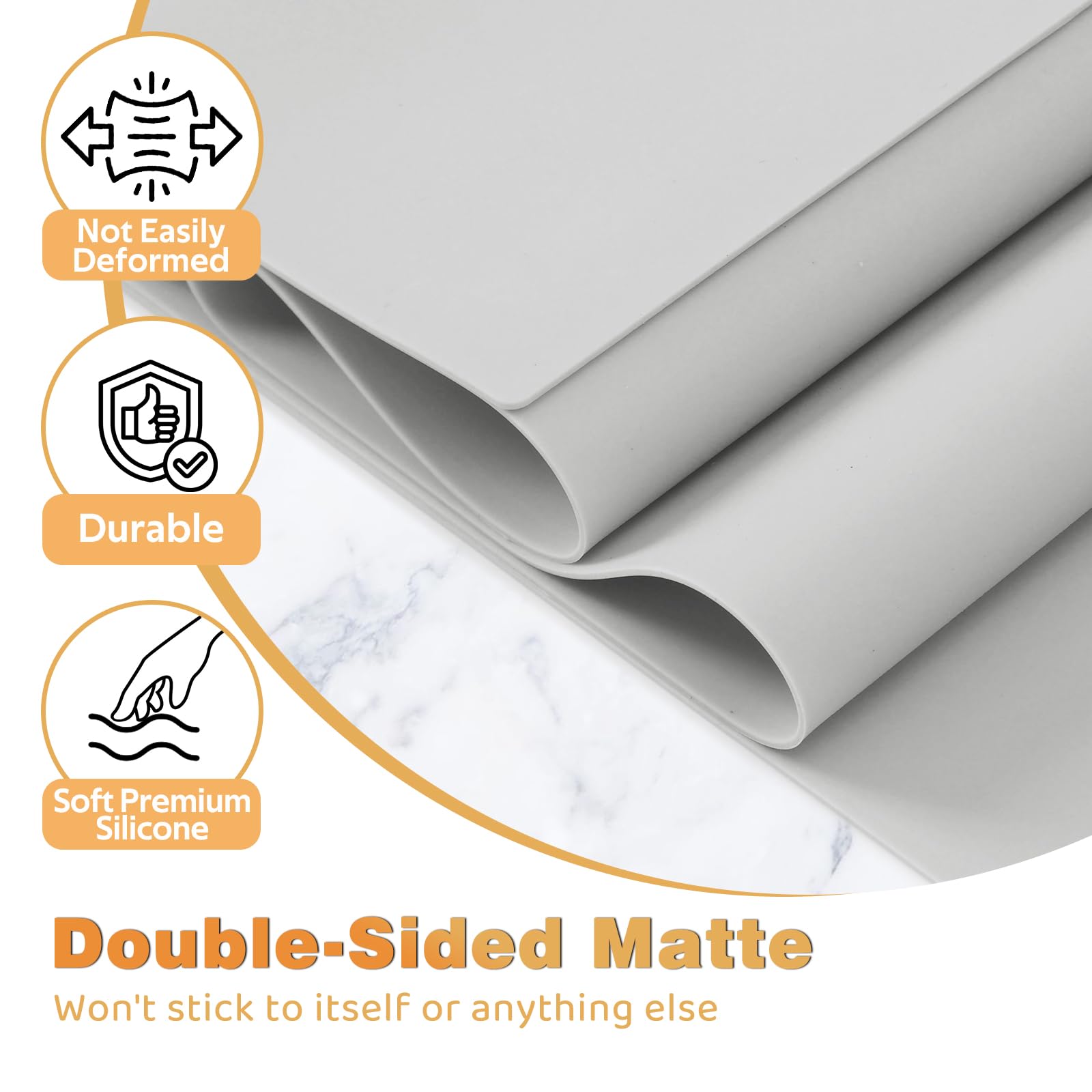 Food Grade Silicone: This silicone mat for countertop is made of food grade silicone, colorless and odorless. Thicker design of the silicon mat is 0.04 inches (1mm), is stronger and more longer lasting than ordinary silicone pad. Its double-sided matte design makes the silicone sheet non-slip & non-stick, items placed on the mat is not easy to slide. The resin, glue, paint can be easily peeled off after curing. Two sides of the same can be used alternatively.