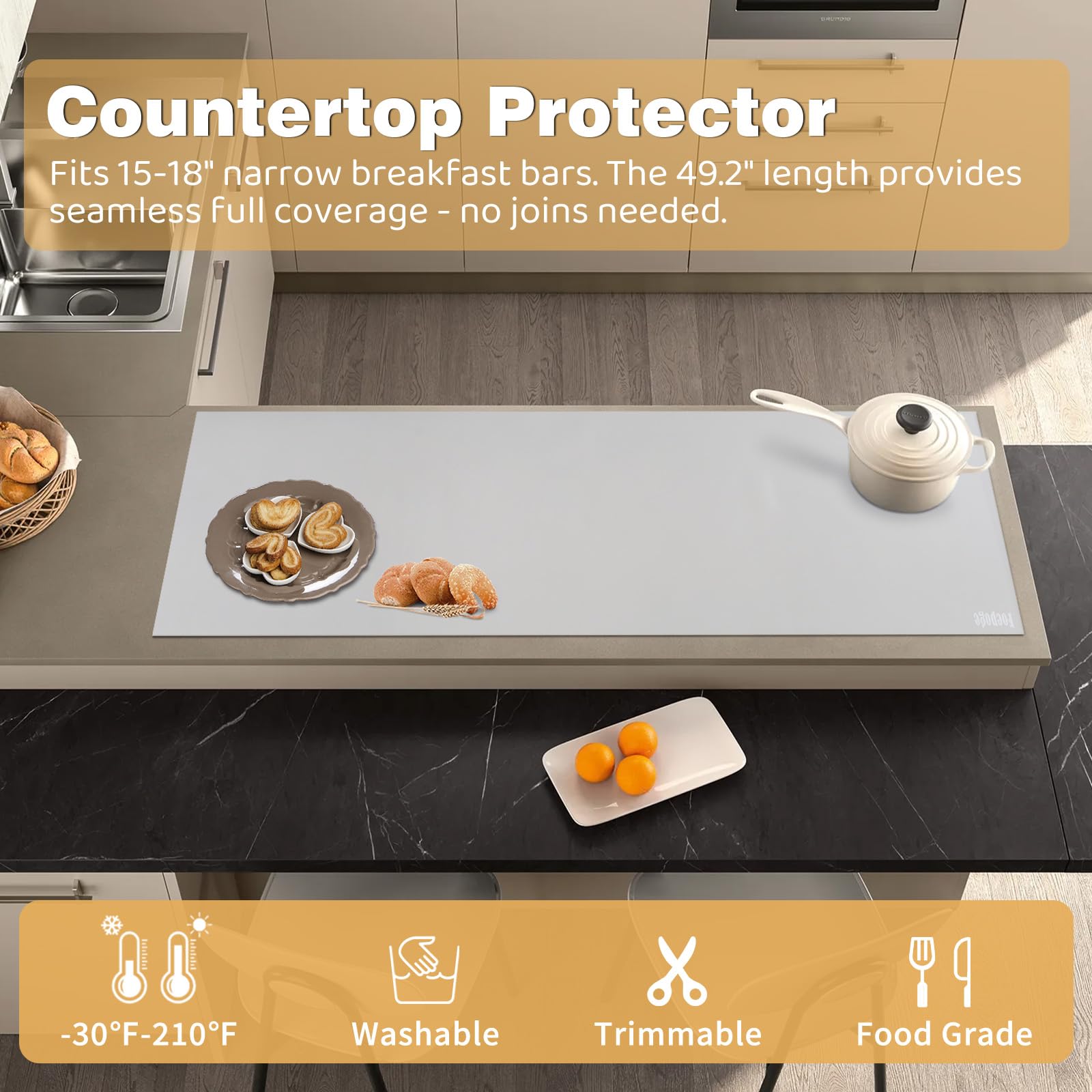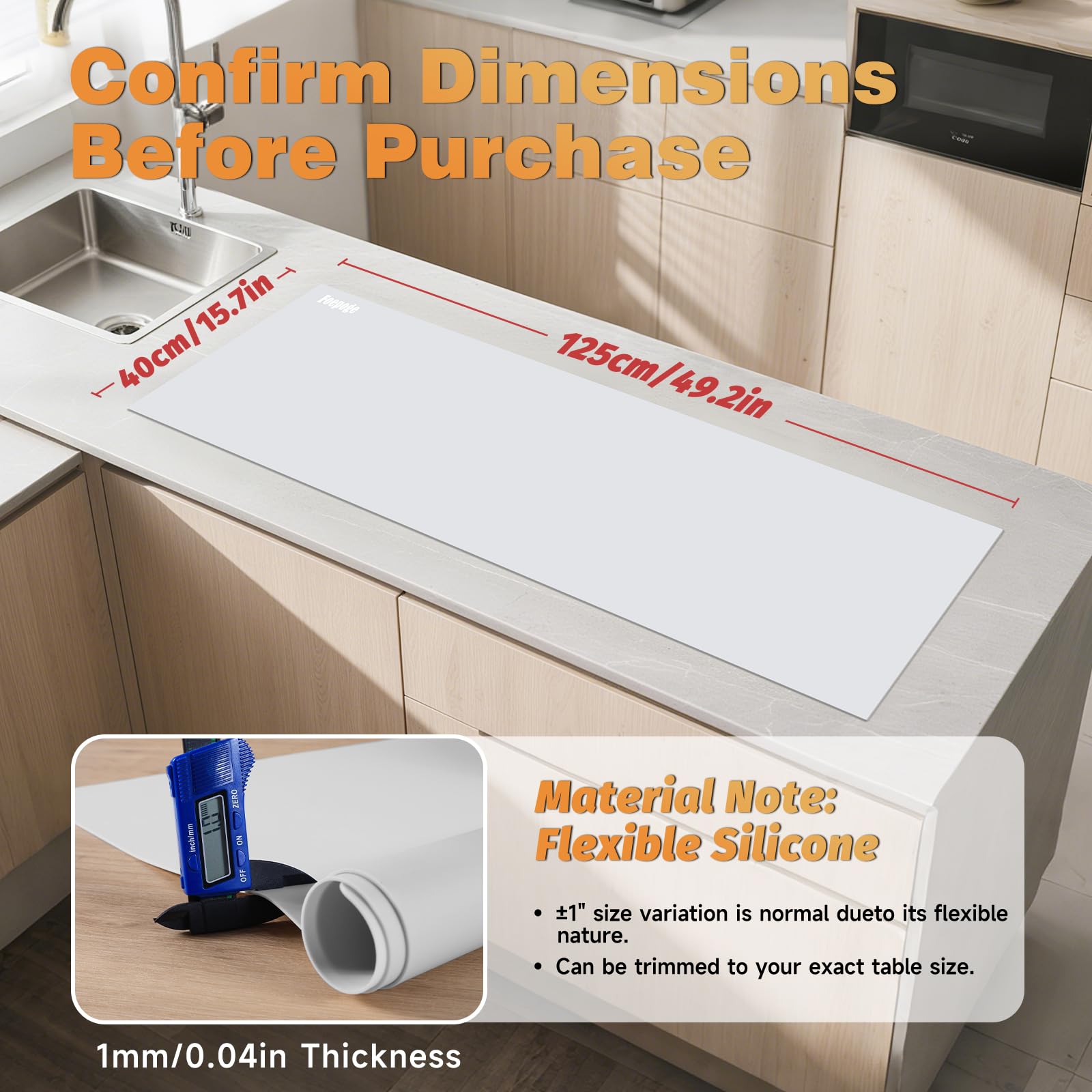 Extra Long Size: The size of the large silicone mat is 49.2 inches by 15.7 inches (125x40cm), which is twice as long the size of a regular 23.6 inches by 15.7 inches (60x40cm), giving extra large space for multipurpose. Great for use as counter mat, food preparation mat, silicone placemat, silicone heat resistant mat, silicone craft mat, resin mat, etc., meet your needs of use in the kitchen, crafts multiple scenarios.