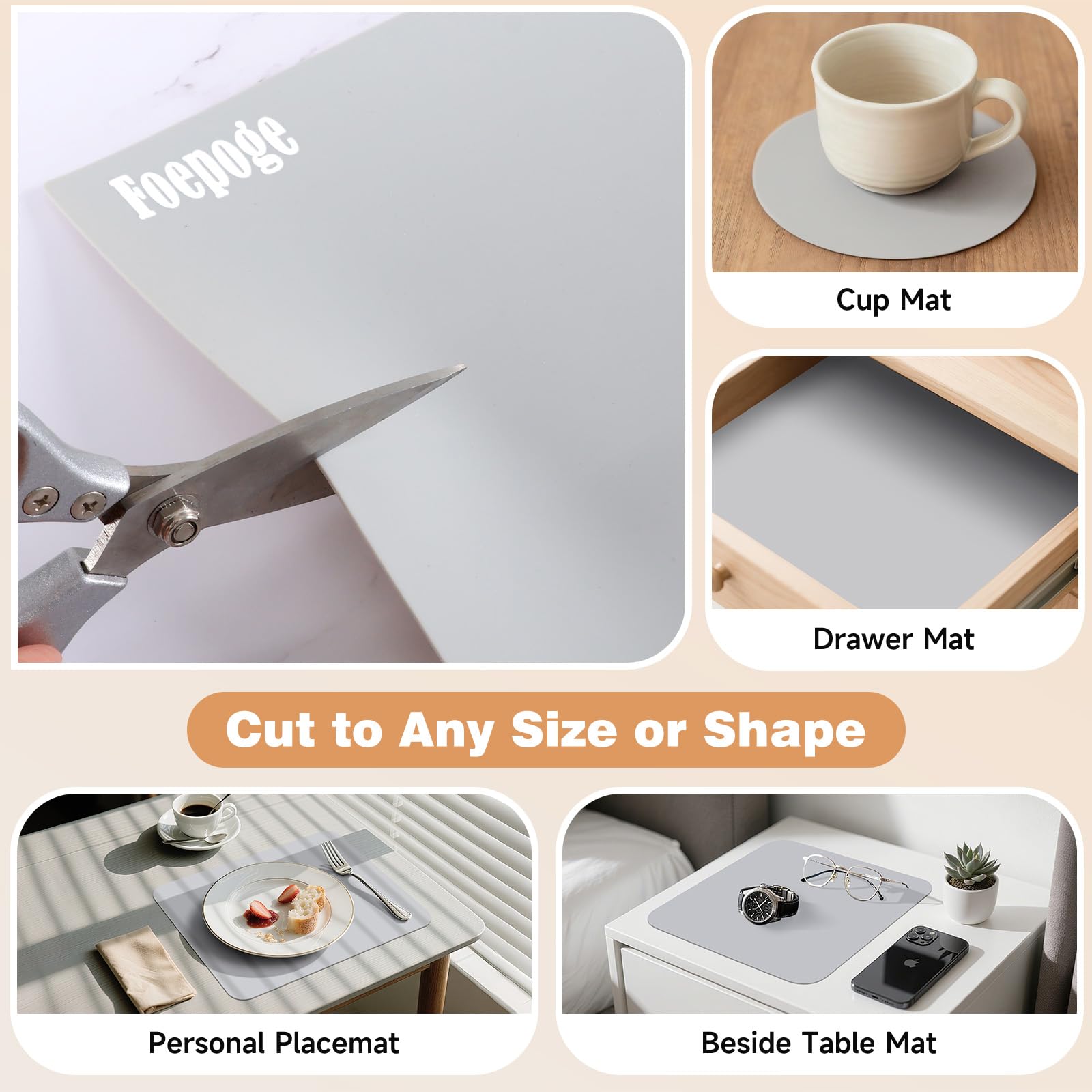 Cut to Size and Heat Resistant: Silicone counter mat can withstand tempreture between -30℉ to 210℉, safe for placing under air fryers, microwave ovens, induction cookers, toasters, coffee makers, etc., reducing kitchen noise. Can be cut to desired size and shape, such as cut to unique size for placemats, coaster mats, drawer mats, etc. Flexible to customize as needed.