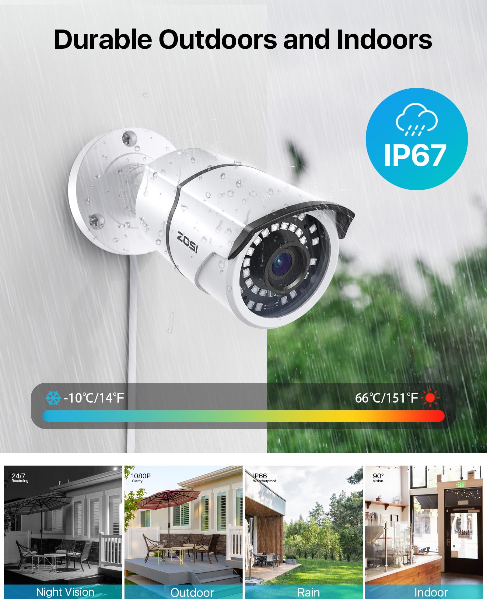 (3). [ IP67 Metal Weatherproof ] __ Camera used high quality metal aluminum materials,3-Axis camera stand,cable through bracket for hassle free use in rainy or snowy days.(Camera Power Supply and Coaxial Video Cables are not included but they are required and sold separately.)
