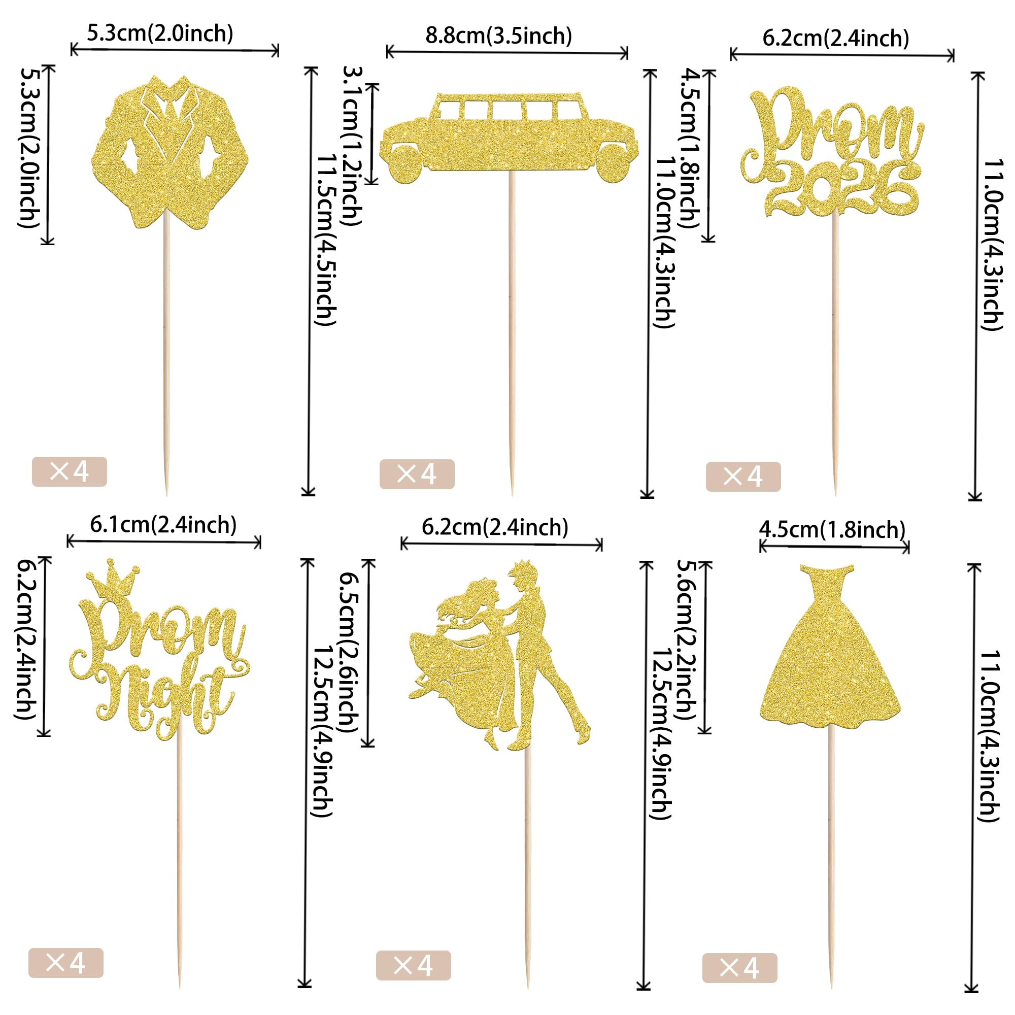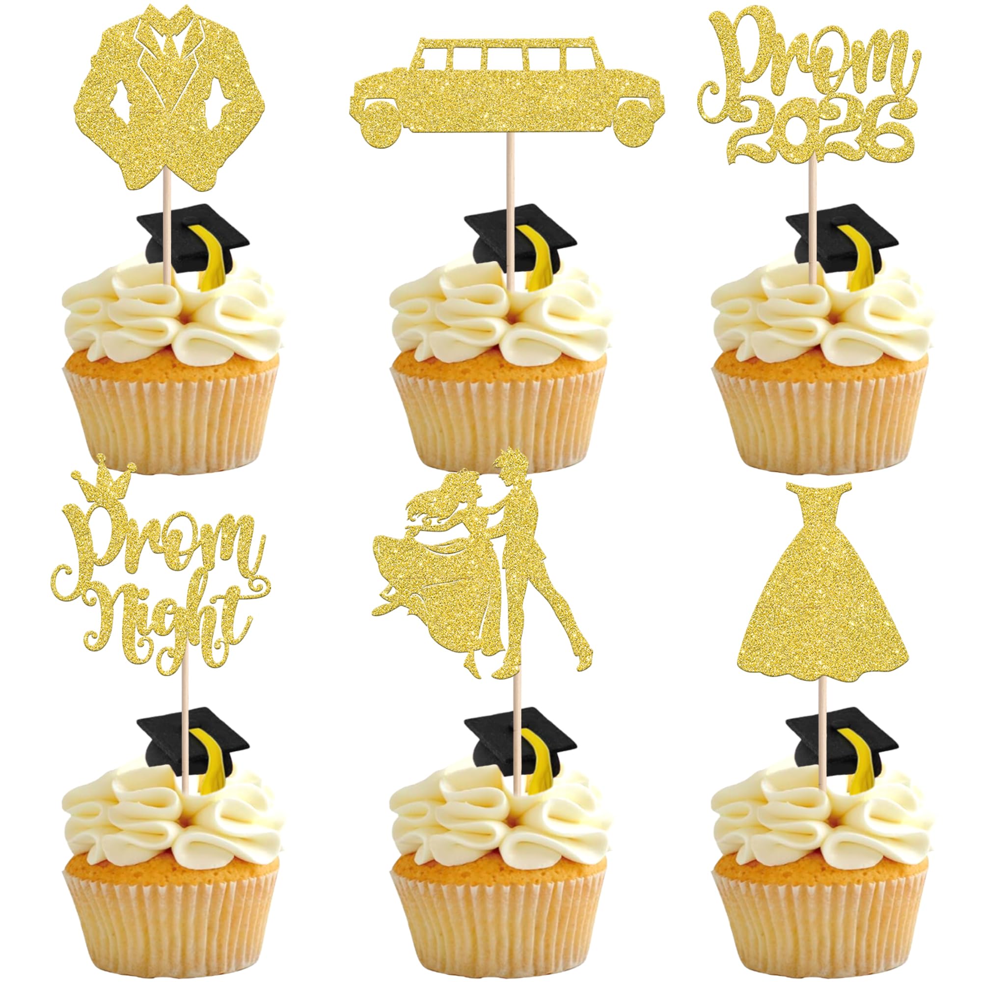 24 PCS Prom 2026 Graduation Cupcake Toppers Glitter Prom Night Party 2026 Cupcake Picks Class of 2026 Cupcake Decorations for Prom Party 2026 College Graduation Cake Decorations Supplies Perfect for class of 2026 graduation theme party cupcake decorations supplies, such as kindergarten, primary, junior, senior high school, college, Master or Ph.D. graduation. Pack of 24 pcs, 4 pcs of each design. The size is 2.1*4.5/ 3.5*3.9/ 1.9*4.5/ 2.4*4.7/ 2.4*4.7/ 2.4*4.5 inch ( with stick ) Made of high quality paper card stock and food grade sticks,thick and sturdy. These cupcake toppers are one side glitter, another side is white, and they are intended for decoration only, please do not put them in oven or microwave. If the item you received has any defects, please contact us for refund.we will deal with it within 24 hours.