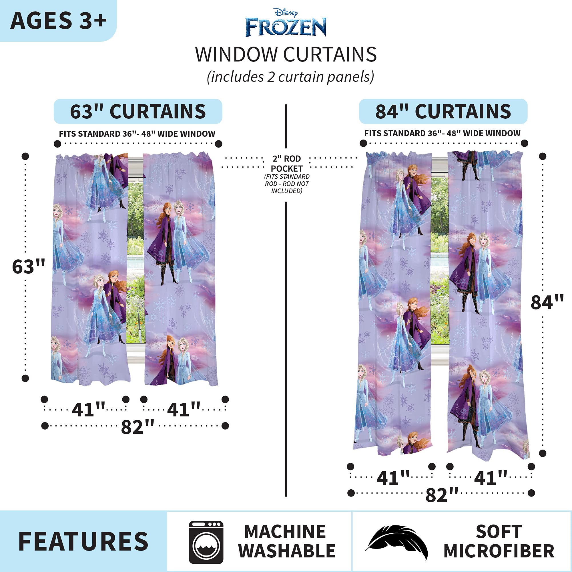 DISNEY FROZEN 2 DESIGN (PRINTS MAY VARY!): Inspire your little one to great adventures with these Frozen 2 curtains featuring their favorite snowy sisters Elsa and Anna.