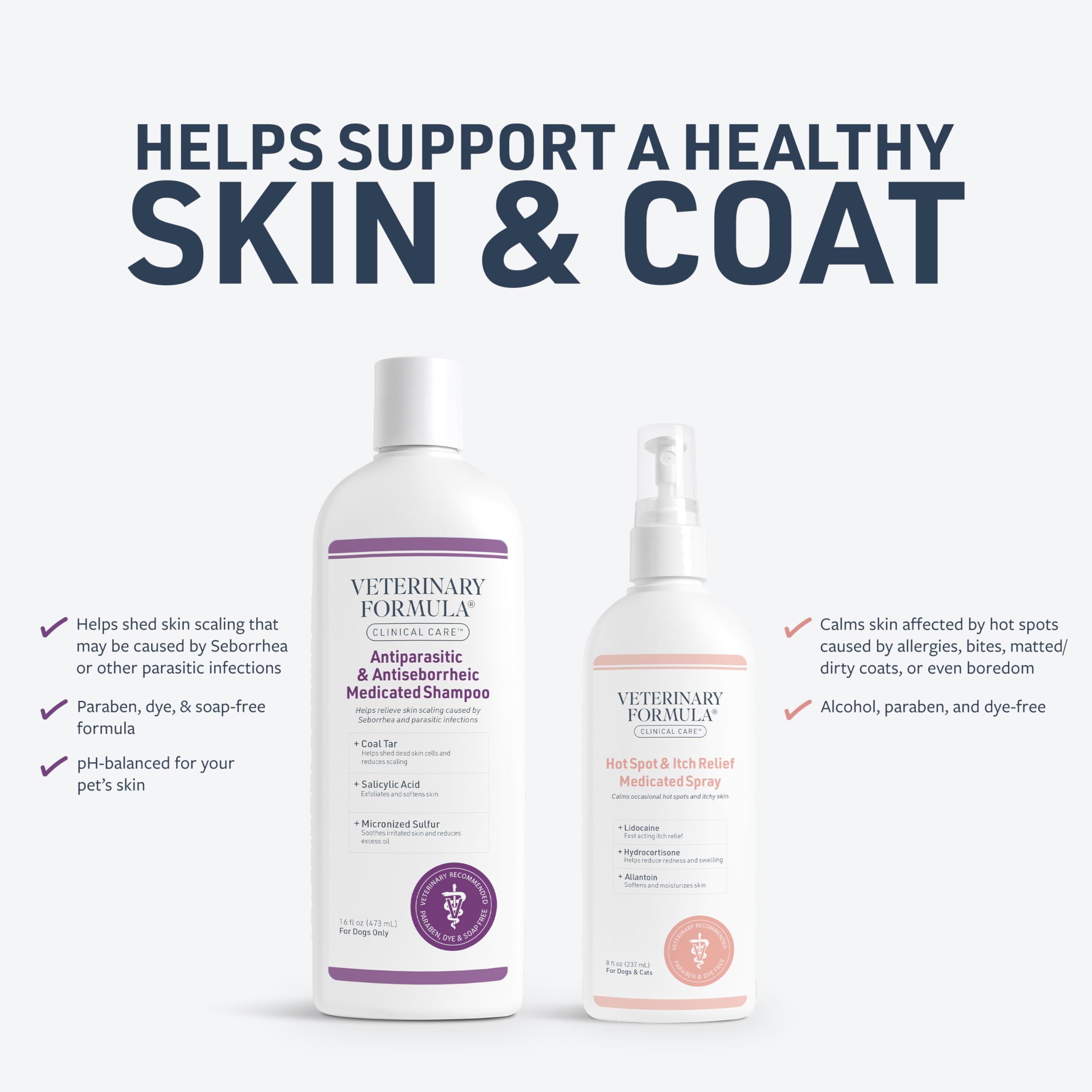 Product 2: USE WITH SHAMPOO – Made with ingredients that calm and moisturize the skin, this cat and dog spray works with our Hot Spot & Itch Relief Shampoo and can be used in between washes.