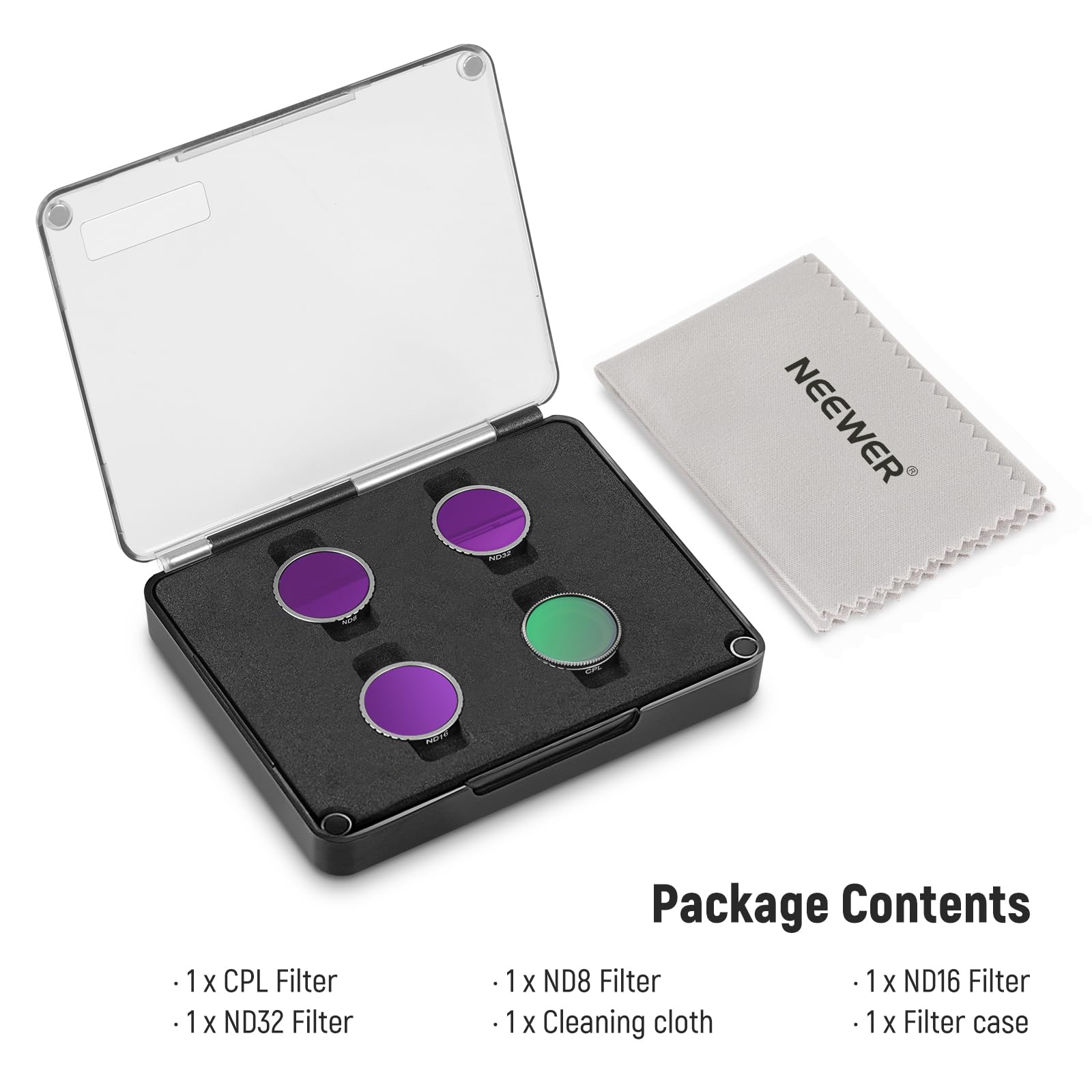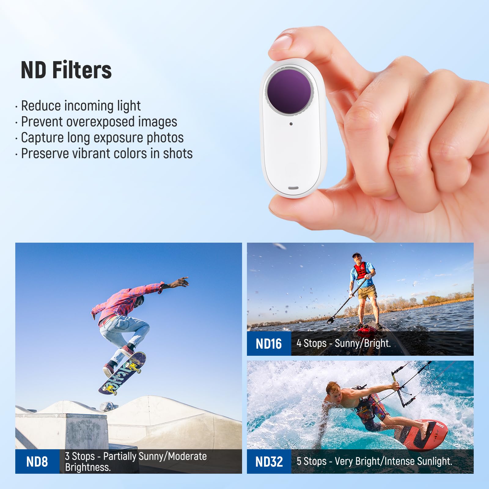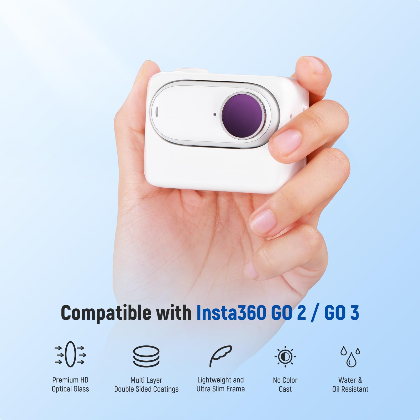 【Fully Compatible with Insta360 GO 2/GO 3】 Specifically designed for the latest GO 2 and GO 3 action cameras. Includes 1x CPL filter, and 3x ND filters (ND8/ND16/ND32), and also a cleaning cloth and filter case for efficient storage and protection