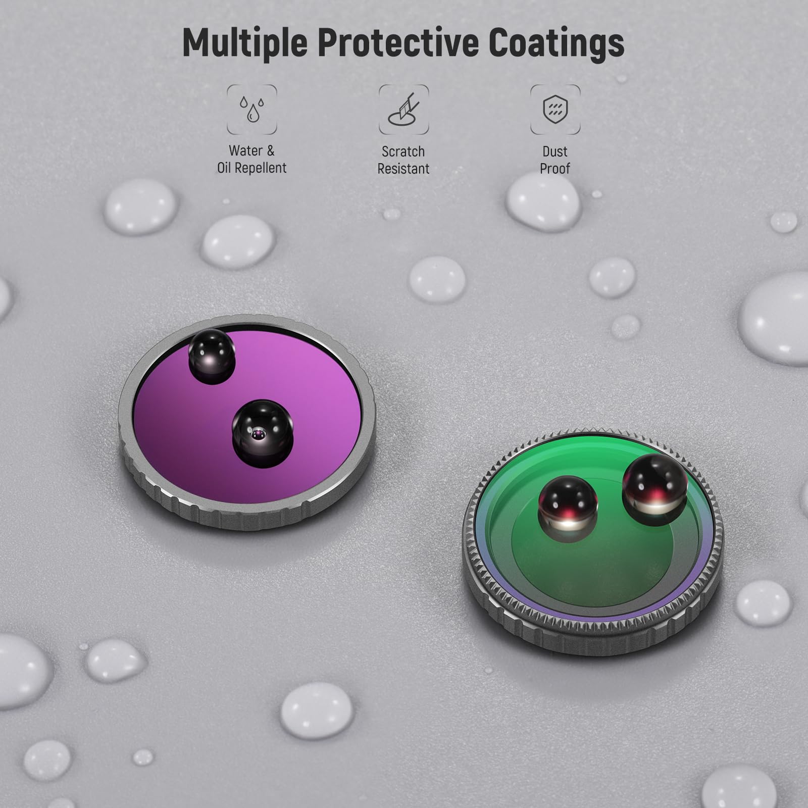 【Multi NANO Coated HD Optical Glass】 Made of imported HD optical glass with 30 layers of NANO coatings on both sides, these filters are effectively protected against water, dust, oil, fingerprint, scratches, and reduce the reflection coming from the filter itself