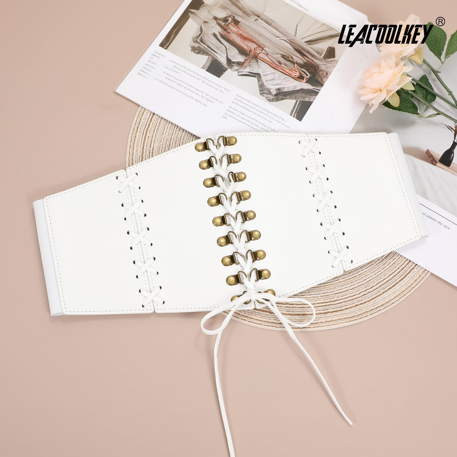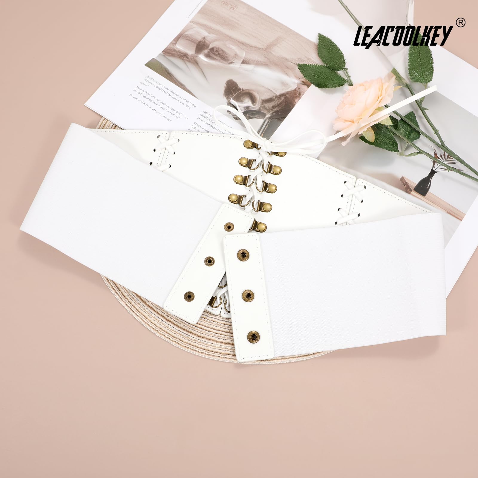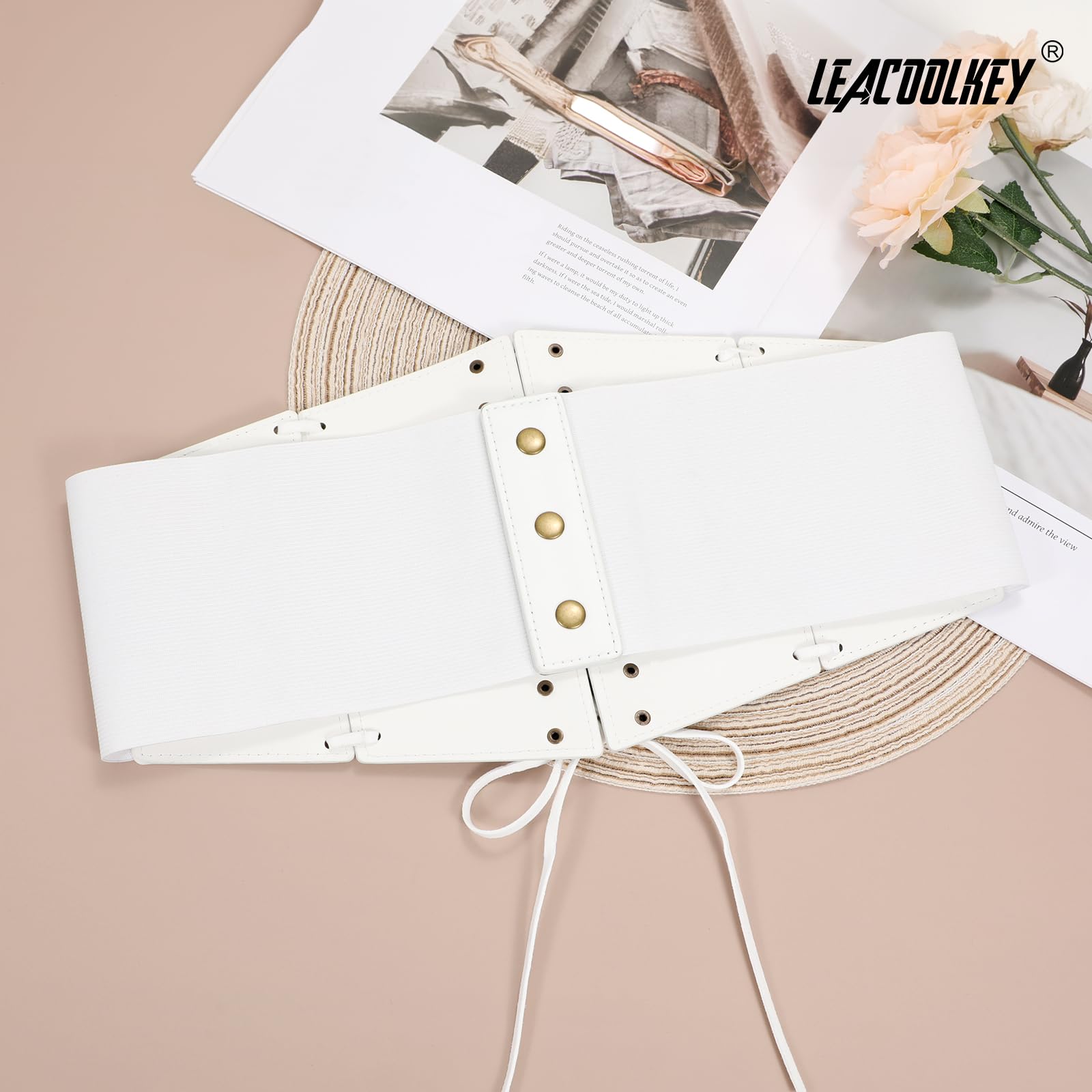 Elastic Corset Belt: The wide corset belt creates a flattering silhouette and elegantly emphasizes the waist. Made of a combination of faux leather front+elastic band+snap button on the back, it is comfortable, durable, and easy to put on and take off. The elastic band is soft and stretchy and will not restrict movement.