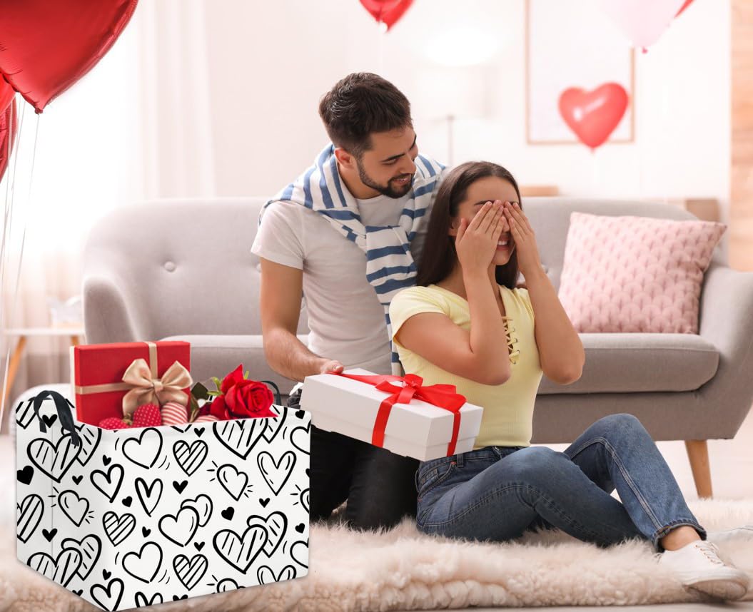 MATERIAL:The valentines day basket basket is made of durable canvas &The inner lining is made of waterproof fabric; sturdy metal rod frame around the top keep the basket shape.