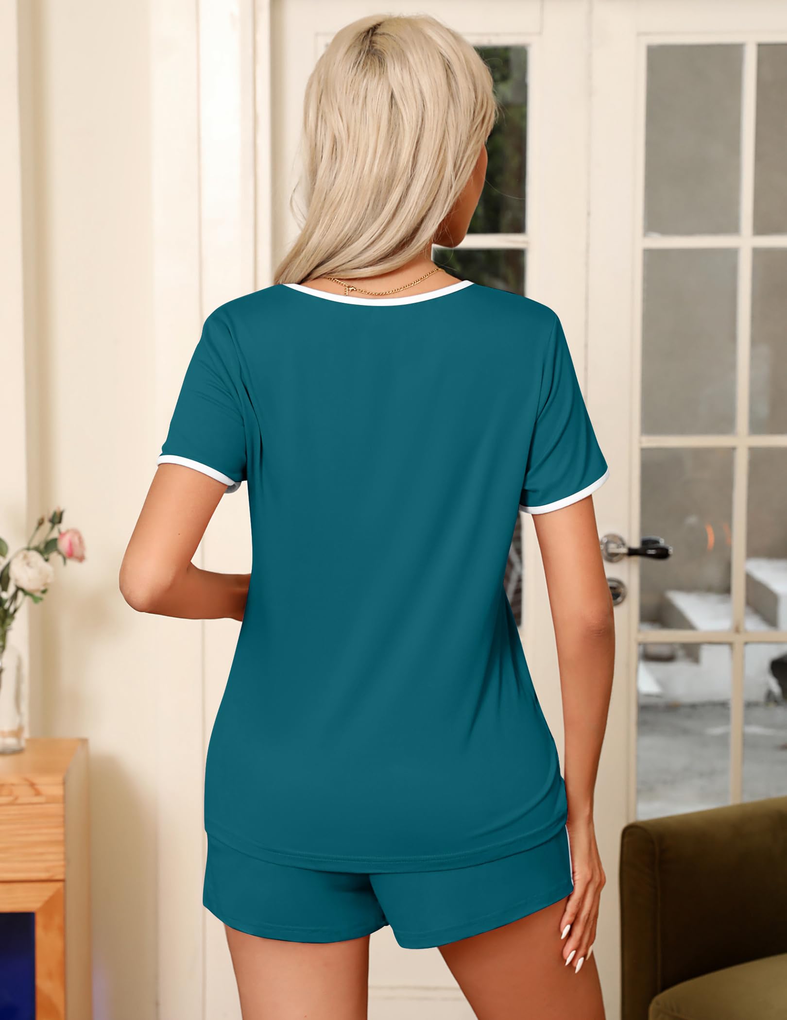 Short Sleeve Tops: Sleep shirt features round collar and chest pockets. Classic and convenient designs make this pjs sets more stylish and unique. Great nightwear, loungerwear that feels incredibly comfy and keeps you cool during hot nights