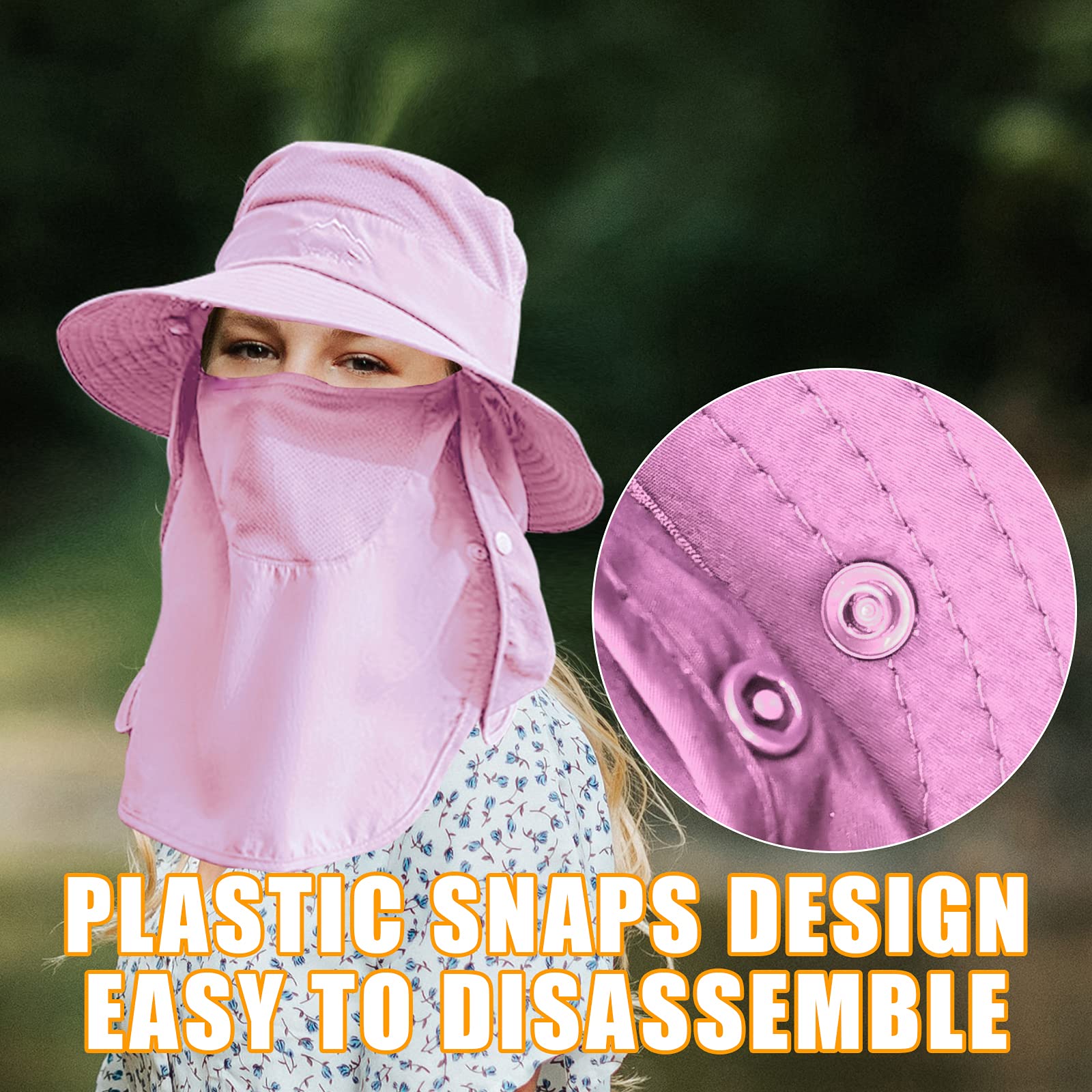 360° Protection & Detachable: This sun hat combined with wide brim, face & neck flap (flap are removable) Which can keep the sun off your head, face and neck. adjustable chin strap to ensure that the hat can maintain comfortable conditions even in strong winds.