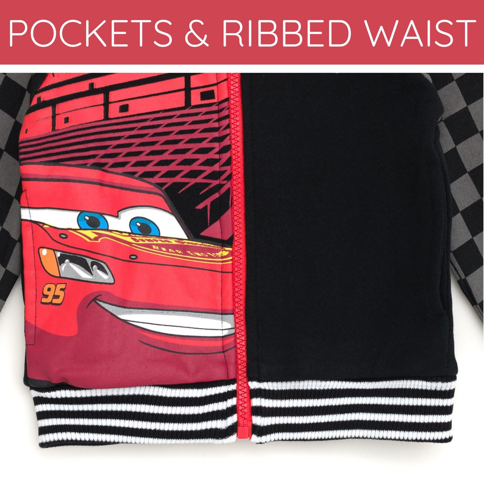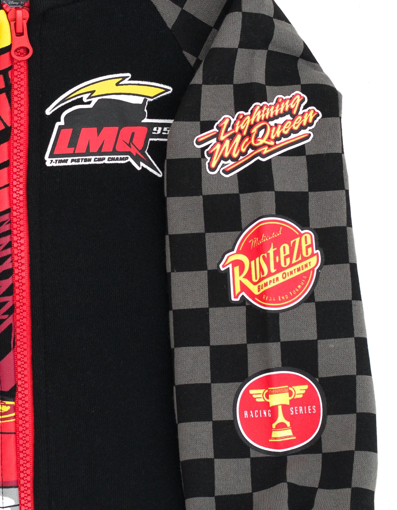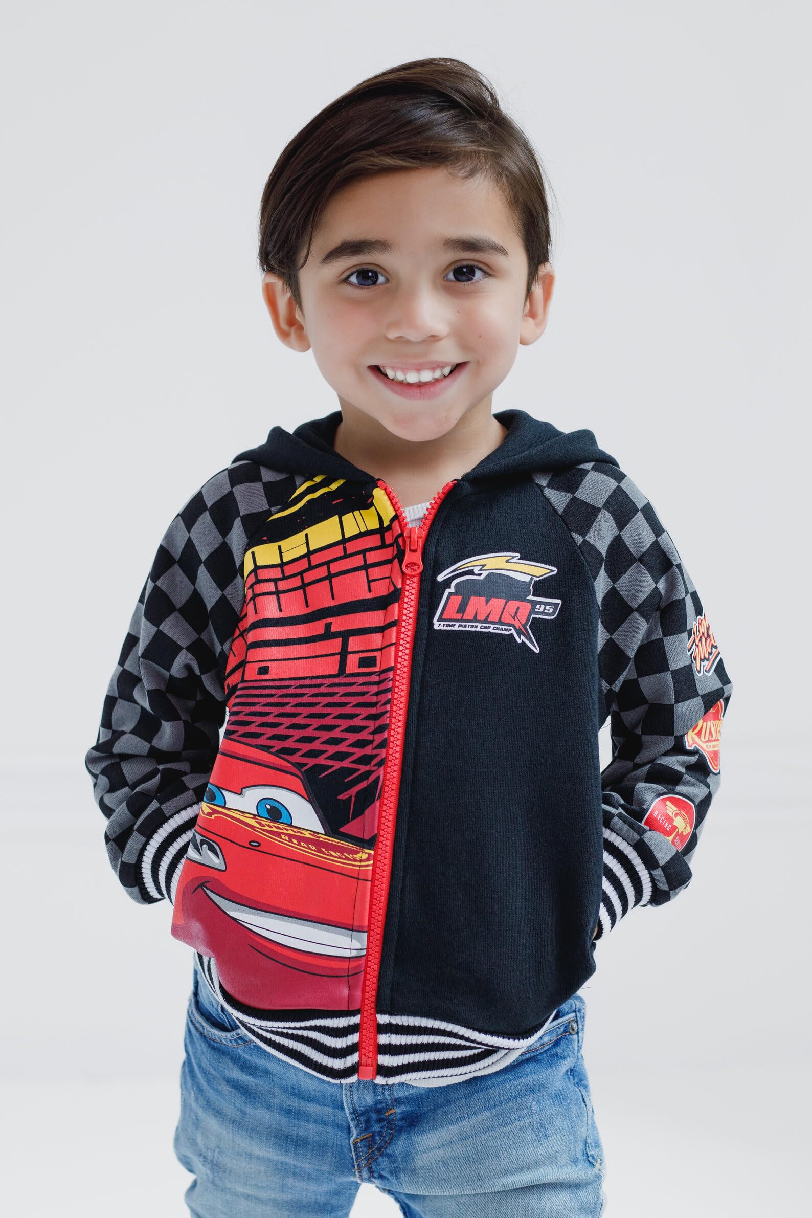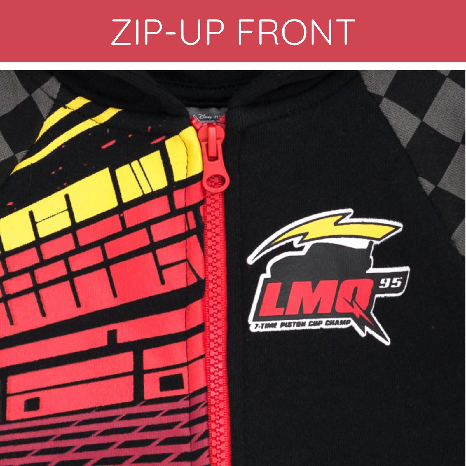 Description Start their engines for cozy adventures with this Disney Lightning McQueen fleece zip-up hoodie! With bold checkered sleeves, fun screen print graphics, and a full zip front, this cozy sweatshirt brings Radiator Springs style to cool-weather days. Made from a soft cotton-blend fleece for warmth and comfort, itβs the perfect layer for racing through playtime, chilly school mornings, or gearing up for birthday fun with their favorite Cars character.