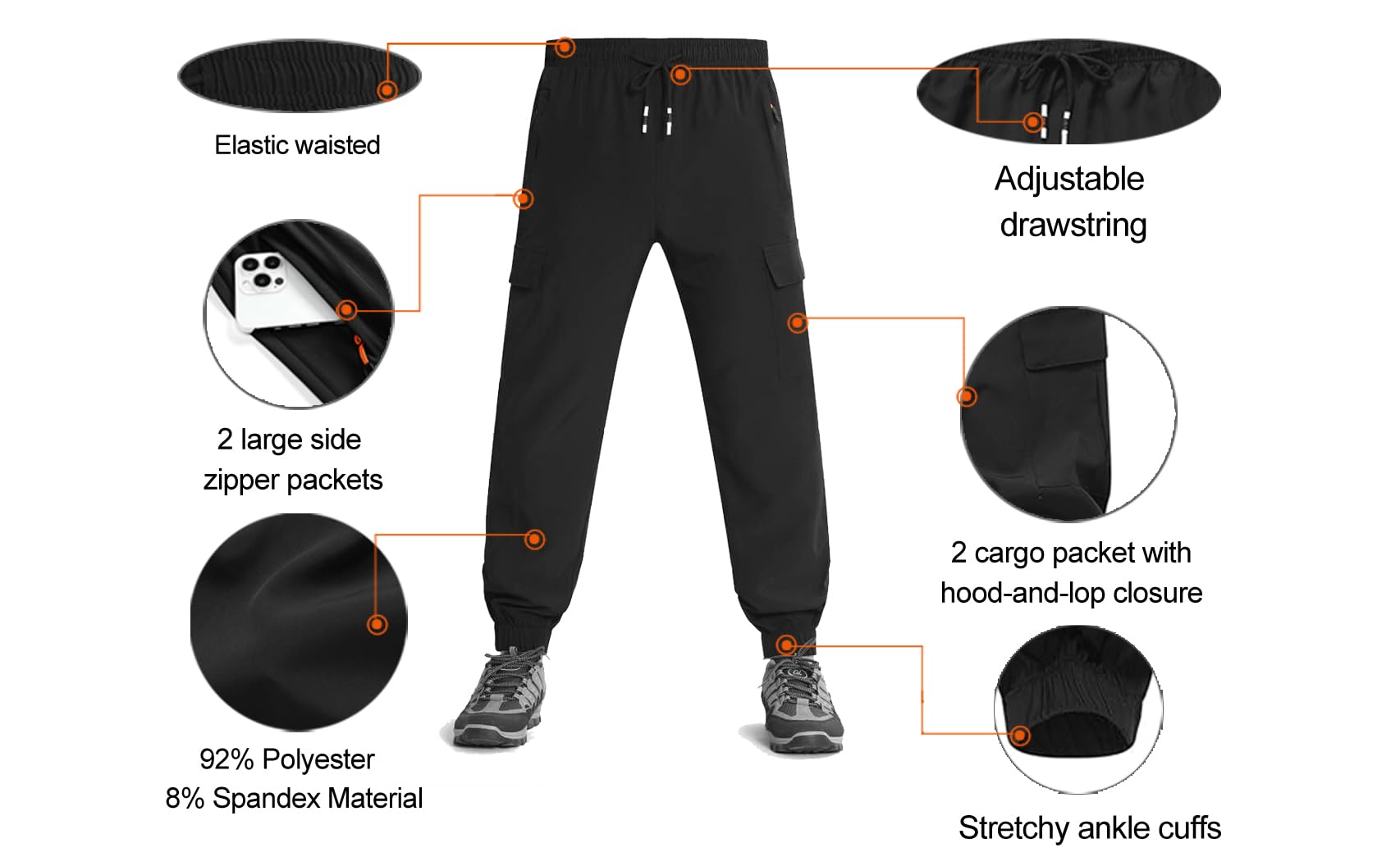 Material: Boys cargo pants with Soft breathable quick-dry material, keeping you dry in the summer, spring, and windy weather