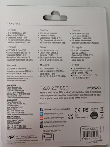 Patriot is proud to present its next generation 2.5” SATA III SSD: The P220. Designed with the latest SATA 3 controller, the P220 is a premier storage solution designed for top system performance. With read and write speeds of up to 550 and 500 MB/s, the P220 gives you the performance you need to get the job done.