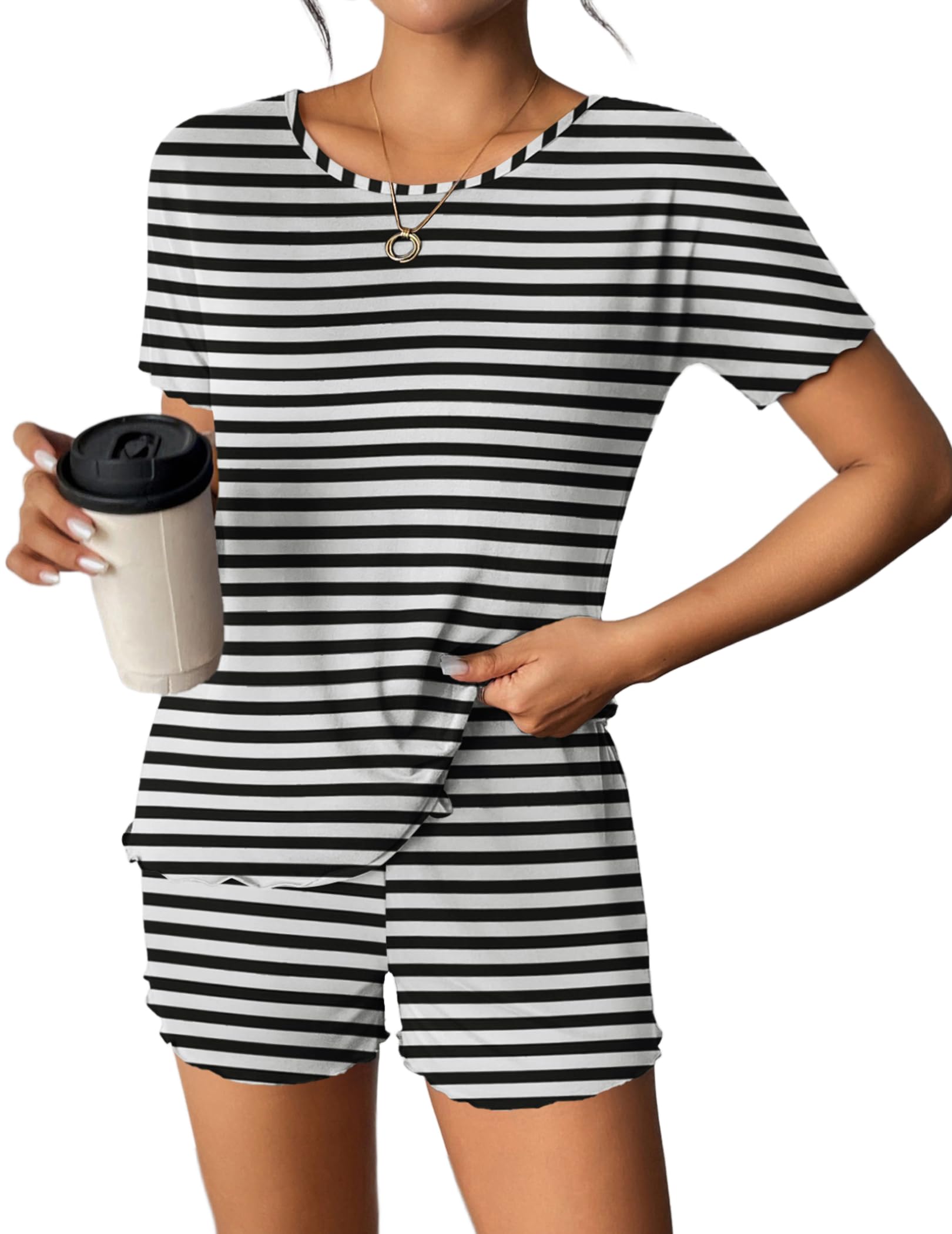 🌙MATCH -- Pajama tops of this women pajama sets can easily match with skirt, leggings, skinny pants, jeans or also pajama. Pjs shorts can be worn with all t-shirts for a casual look. 2 pieces sets match with sneakers, sports shoes perfectly.