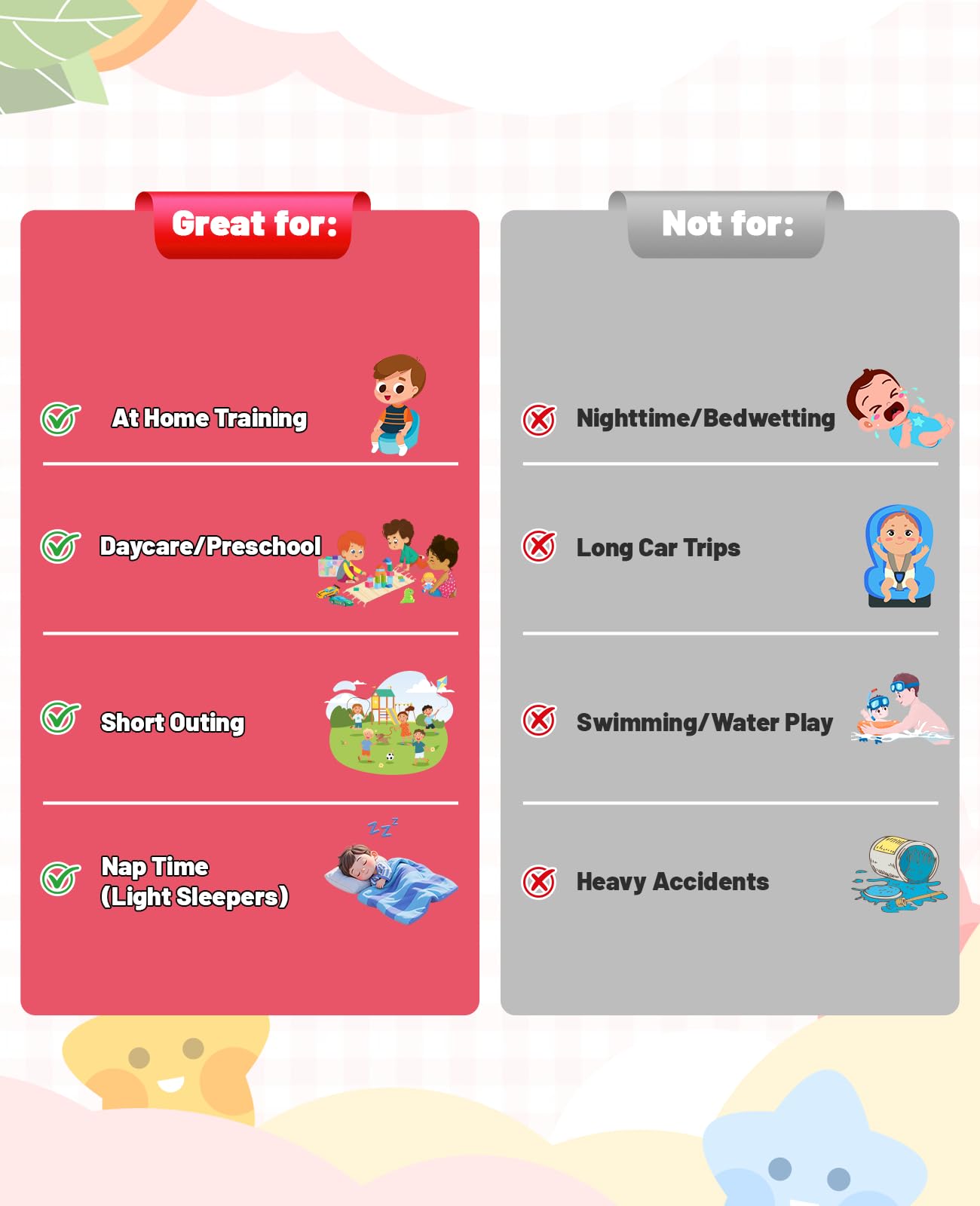 Care Instruction:Our boys and girls training underwear is machine washable. To ensure the best results, we recommend washing the underwear separately or only with other cotton fabric. To preserve the quality of the materials, we suggest washing on a delicate cycle and avoiding harsh detergents. For best results, hand dry or use a gentle tumble dry setting to dry the underwear. Please DO NOT use bleach or dry clean the underwear, as this can damage the materials and affect the absorbency