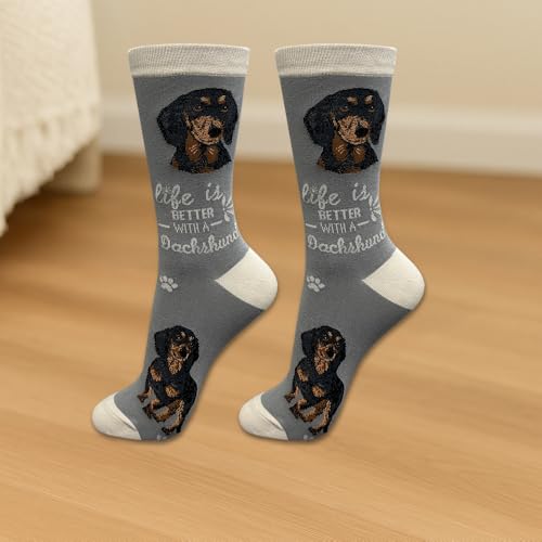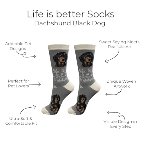 Description Introducing our collection of adorable and vibrant pet lover socks designed exclusively for pet lovers! These funny socks are the epitome of cuteness and novelty, guaranteed to bring a smile to your face. Big image of dog head woven on both sides on the socks and full body image woven on the bottom of the socks with a cute saying that says life is better with Dog. These socks are made in South Korea, These funny socks are made from 200 needle count machines which give life-like detail of your favorite pet. Step up your sock game with our adorable and hilarious Dog Socks, designed especially for pet lovers! These novelty socks are the perfect addition to your collection, featuring cute and silly designs that are bound to make you smile. Made with high-quality materials, these fun socks offer both comfort and style. They add a playful and fashionable touch to your everyday outfits, whether you're dressing up or keeping it casual. Whether you're a dog mom, a dog dad, or simply a dog lover, these socks are a must-have. With their delightful designs and comfortable fit, these socks are a fashionable treat for pet lovers and make great novelty gifts and dog mom gifts.