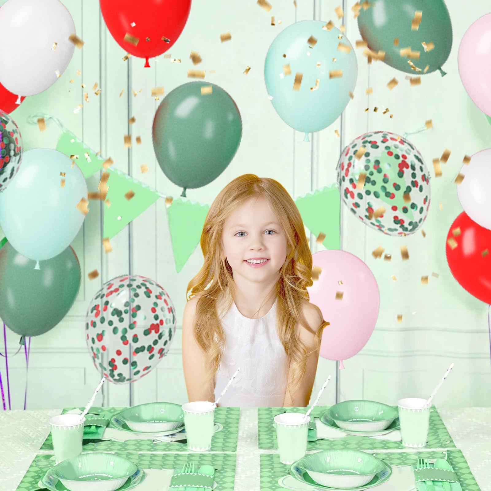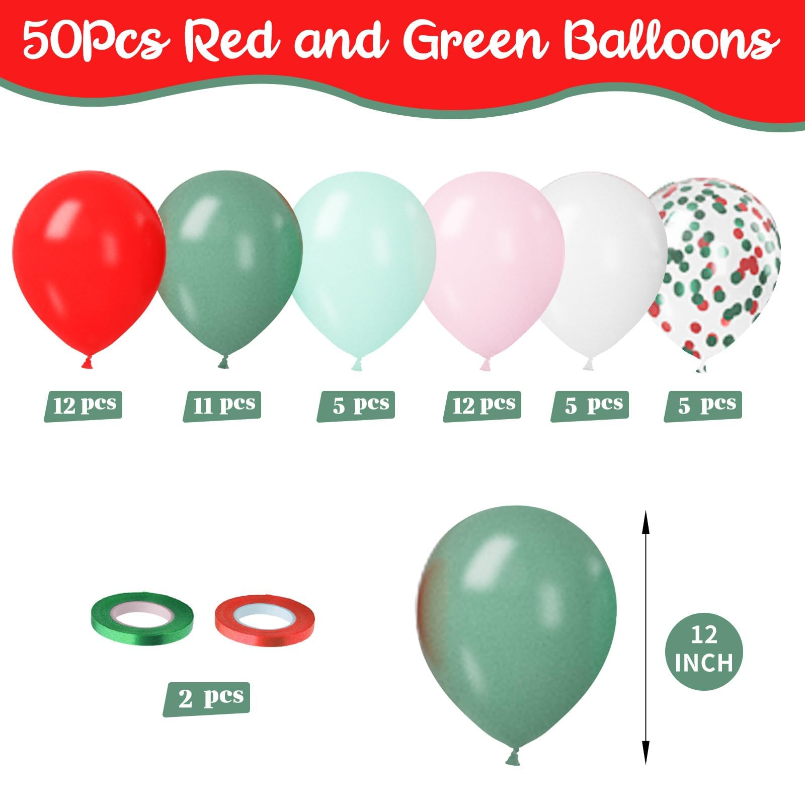 【WHAT YOU WILL GET】Our birthday party balloons include 50pcs red and green balloons, designed to help you create stunning decoration: 12 x red balloons, 12 x pastel pink balloons, 5 x white balloons, 5 x macaron green balloons, 11 x retro green balloons, 5 x confetti red green balloons, 1 x green ribbon, and 1 x red ribbon. The size of the balloon is about 12 inches after inflation. The combination of red, green and pink can make party or occasion more classy.