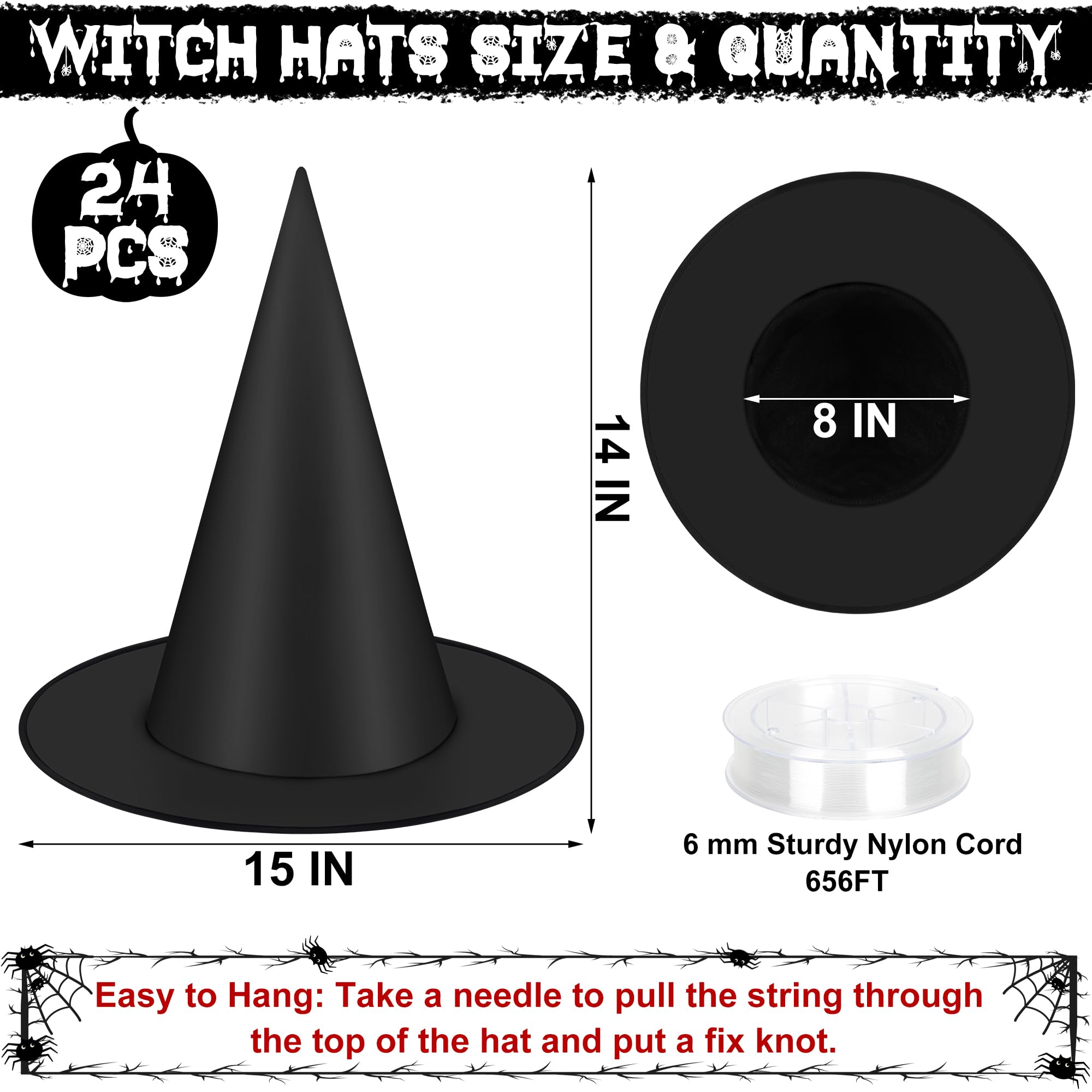 What You Will Receive - You will receive 24 pcs witches hats and 656 ft of 6 mm nylon cord, ensuring there's enough to adorn your space or distribute among friends and family. Transform your Halloween party events with a great ambiance.