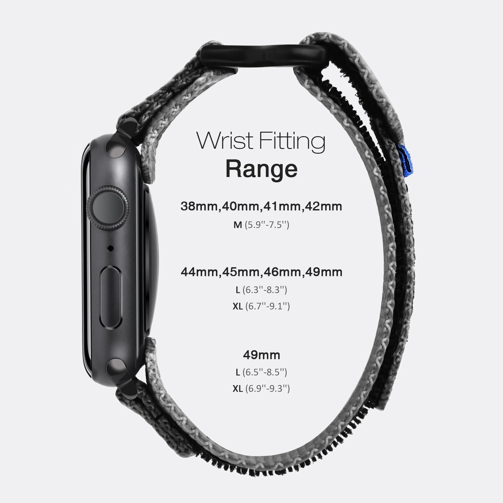 Wrist Fitting Range:For 44mm/45mm/46mm/49mm watch, band fitting range is XL(8.9''-9.9'')