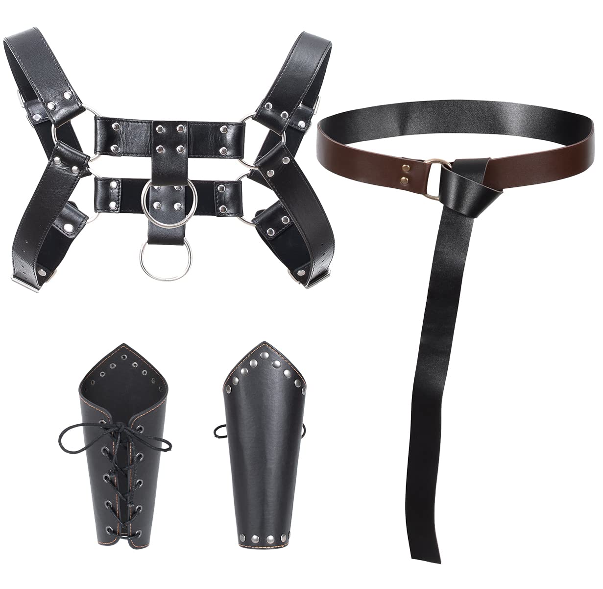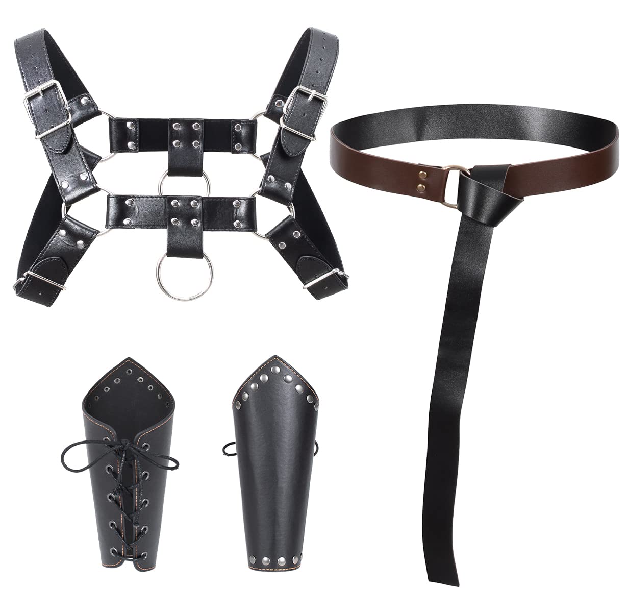 Package includes: Type1: PU leather chest belt *1, PU leather renaissance medieval waist belt *1, PU leather punk gothic bracer*2, 4-piece set. Type2: PU leather single shoulder cover cape belt *1,PU leather renaissance medieval waist belt *1, PU leather punk gothic bracer*2, 4-piece set. Type3: PU leather single shoulder belt *1, PU leather punk gothic bracer*2, 3-piece set. Type4-Type8: Shawl scarf *1,PU leather renaissance medieval waist belt *1, PU leather punk gothic bracer*2, 4-piece set. Type9-Type10: PU leather renaissance medieval waist belt *1, PU leather punk gothic bracer*2, 3-piece set. Type11: PU leather single shoulder belt *1, Shawl scarf *1,PU leather renaissance medieval waist belt *1, PU leather punk gothic bracer*2, 5-piece set. Type12: PU leather shoulders cover cape belt *1,PU leather renaissance medieval waist belt *1, PU leather punk gothic bracer*2, 4-piece set. Type13: Shawl scarf *1, PU leather shoulders cover cape belt *1,PU leather renaissance medieval waist belt *1, PU leather punk gothic bracer*2, 5-piece set. Type14: PU leather single shoulder belt *1, Shawl scarf *1,PU leather renaissance medieval waist belt *1, PU leather punk gothic bracer*2, 5-piece set. Type15: PU leather single shoulder belt *1, Shawl scarf *1,PU leather renaissance medieval waist belt *1, PU leather punk gothic bracer*2, 5-piece set. Unisex medieval knight leather belt shawl men women's steampunk renaissance accessory half shoulder cape scarf buckle bracers sash armlet armband armor shrug retro no belt eyelets renaissance waist belt accessories cosplay party costume Faux leather shoulder dragonscale armor shrug belt cosplay party costume outfit renaissance medieval waist belt punk gothic bracer shawl scarf Armor armor is fully wearable and comfortably made.string ties make it fairly adjustable to different arm sizes.